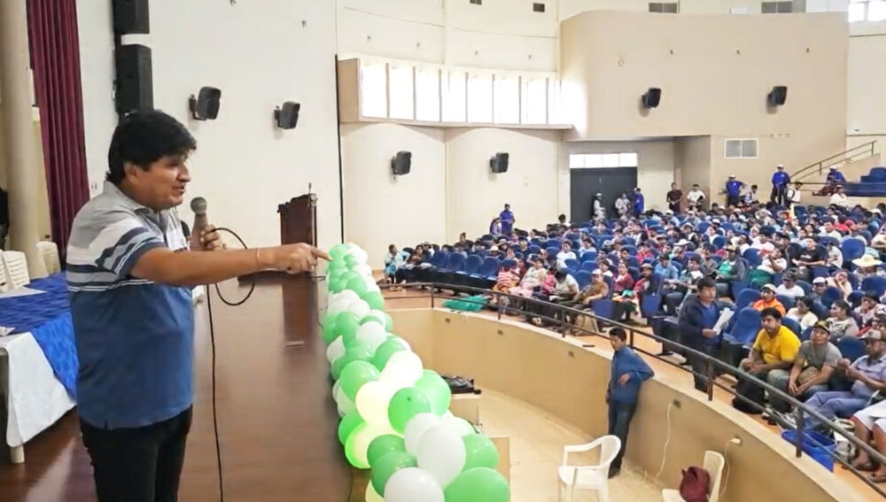 Evo Morales ante un congreso orgánico de las federaciones del Trópico en el Chapare. Foto/captura