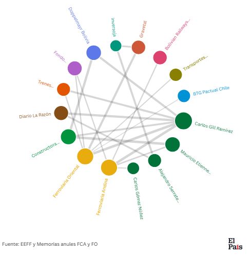 Carlos Gill Ramírez llegó a Bolivia en 2009 adquiriendo La Razón. En 2015 asumió la presidencia del directorio de Ferroviaria Andina, donde Mauricio Etienne Solares ingresó como director ese año. Desde 2023 preside también Ferroviaria Oriental, controlando así el 100% del sistema ferroviario concesionado. Gill ha dicho públicamente que “el gerente de Bolivia” es Álvaro García Linera, vicepresidente entre 2006 y 2019.