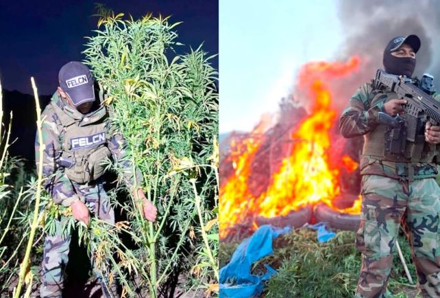 En una operación de mucha precisión, la Fuerza Especial de Lucha Contra el Narcotráfico (Felcn) logró incinerar más de ocho toneladas de marihuana húmeda en la comunidad de Itapaya, municipio de Chayanta, al norte del Departamento de Potosí. La intervención se dio tras un prolongado trabajo de inteligencia que permitió ubicar un foco de producción ilícita oculto entre quebradas de difícil acceso.