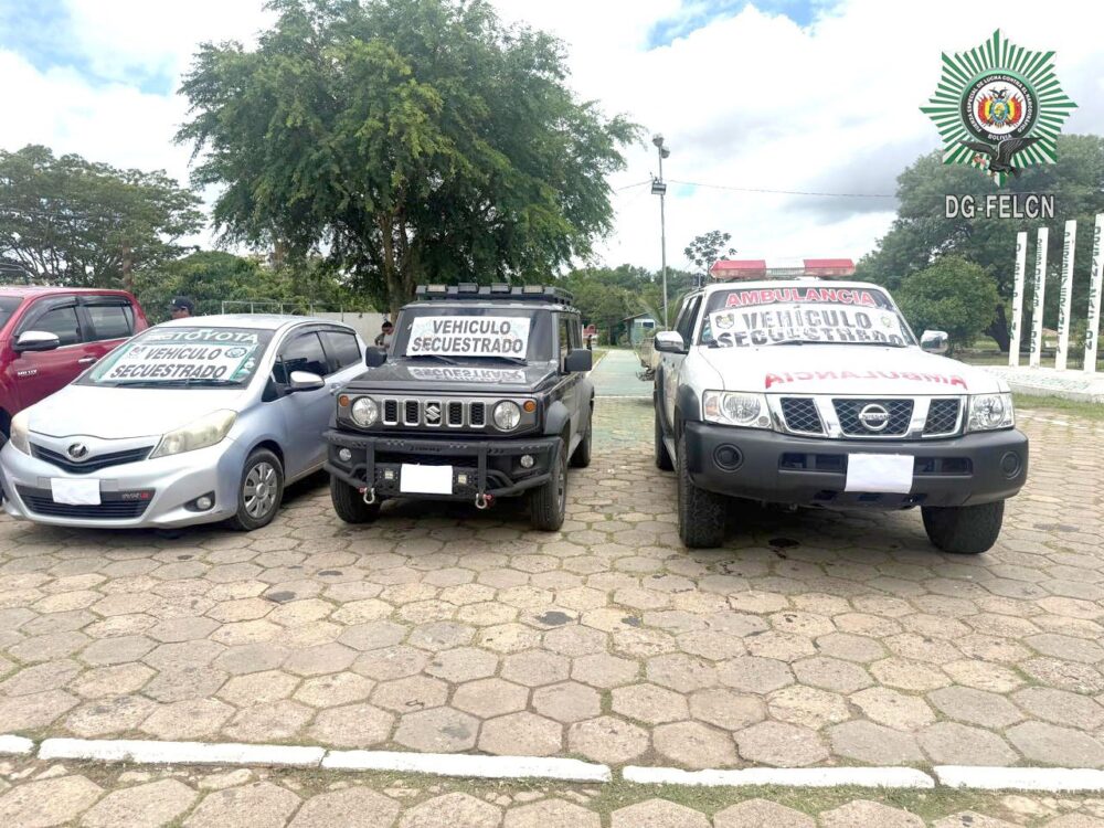 Vehículos secuestrados por la fuerza antidroga. Foto: Felcn