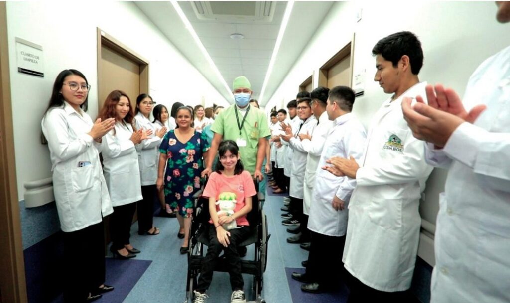Santa Cruz de la Sierra.- Isabela Arduz Oropeza, adolescente de 13 años diagnosticada con escoliosis severa, fue sometida a una cirugía de alta complejidad que corrigió la deformidad que comprometía su movilidad y respiración. La intervención fue posible gracias al apoyo de la Teletón UDABOL, el Hospital Universitario Martín Dockweiler y la Universidad UDABOL, además del respaldo de cientos de personas que confiaron en esta iniciativa solidaria.