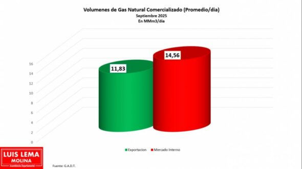 Bolivia atraviesa una de sus etapas más críticas en materia energética y fiscal, pues los últimos datos de Yacimientos Petrolíferos Fiscales Bolivianos (YPFB), correspondientes a septiembre de este año, revelan que la producción de gas natural cayó a 26,3 millones de metros cúbicos por día (MMmcd), de los cuales 14,56 MMmcd se destinaron al mercado interno y 11,83 MMmcd a la exportación, principalmente hacia Brasil.