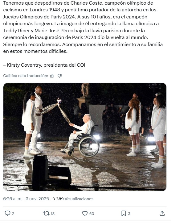 Además de sus triunfos sobre la pista, Coste es particularmente recordado por transmitir la antorcha olímpica a la velocista Marie-José Perec y al legendario judoca Teddy Riner en la última ceremonia de los JJ.OO. de París en 2024.