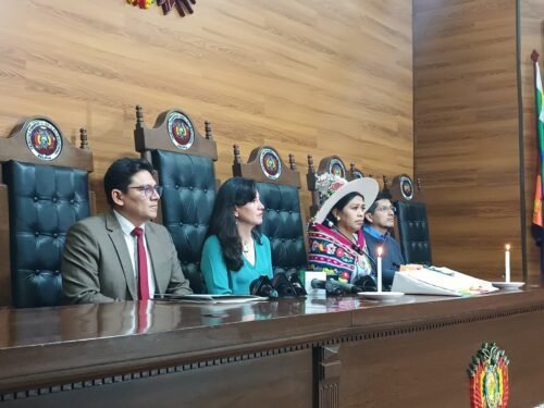 «Este Tribunal Constitucional Plurinacional ya no será un órgano de persecución ni velará por intereses subjetivos o particulares, sino que retoma su verdadero rol: ser el garante de que ustedes puedan administrar justicia sin recibir llamadas, presiones ni amenazas de nadie. Hoy el tiempo de la autoprórroga ha concluido. A partir de este momento se cierran las puertas a la arbitrariedad», enfatizó la nueva autoridad del TCP, tras la toma del juramento.