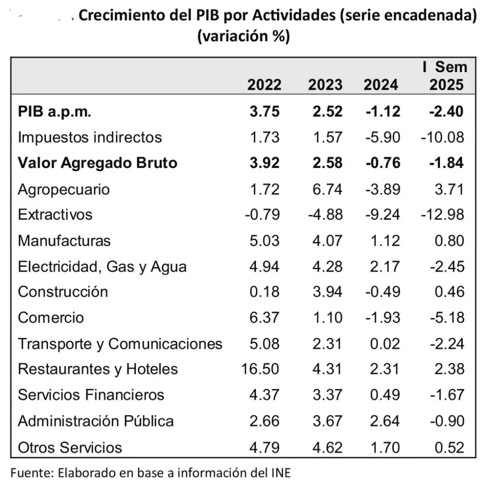 Milenio asegura que en la gestión 2025, el país soporta un deterioro general de los indicadores fiscales, monetarios, financieros, comerciales y productivos. Como era previsible, la economía ha entrado en una fase de recesión, que ahonda los desequilibrios macroeconómicos y hace más difícil restablecer la estabilidad económica y social.
