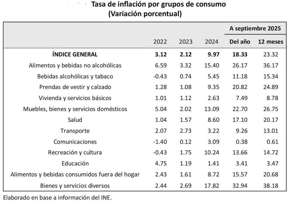 En la presentación, Milenio hizo énfasis en que el rubro de alimentos es el principal motor inflacionario, alcanzando una tasa de 36.2% a septiembre de 2025. La política de subsidios podría estar ocultando inflación reprimida.