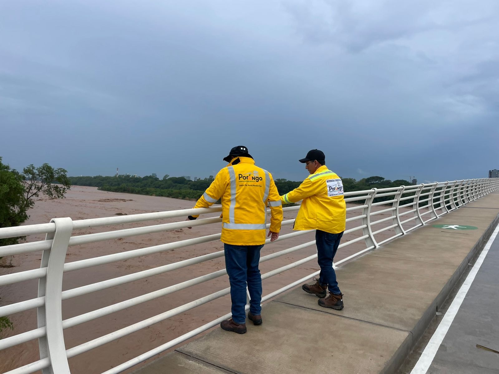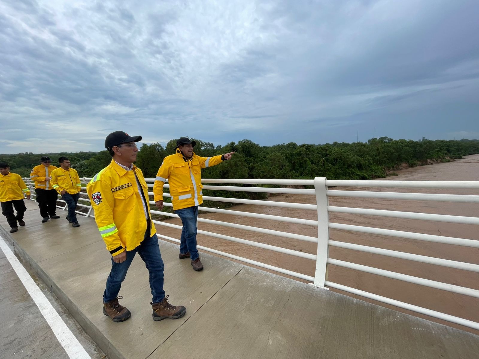 Luego de la reunión, el alcalde realizó una inspección en el puente Cristóbal Roda, donde se constató una crecida extraordinaria del río Piraí cuyas aguas alcanzan aproximadamente 2,5 metros de altura.