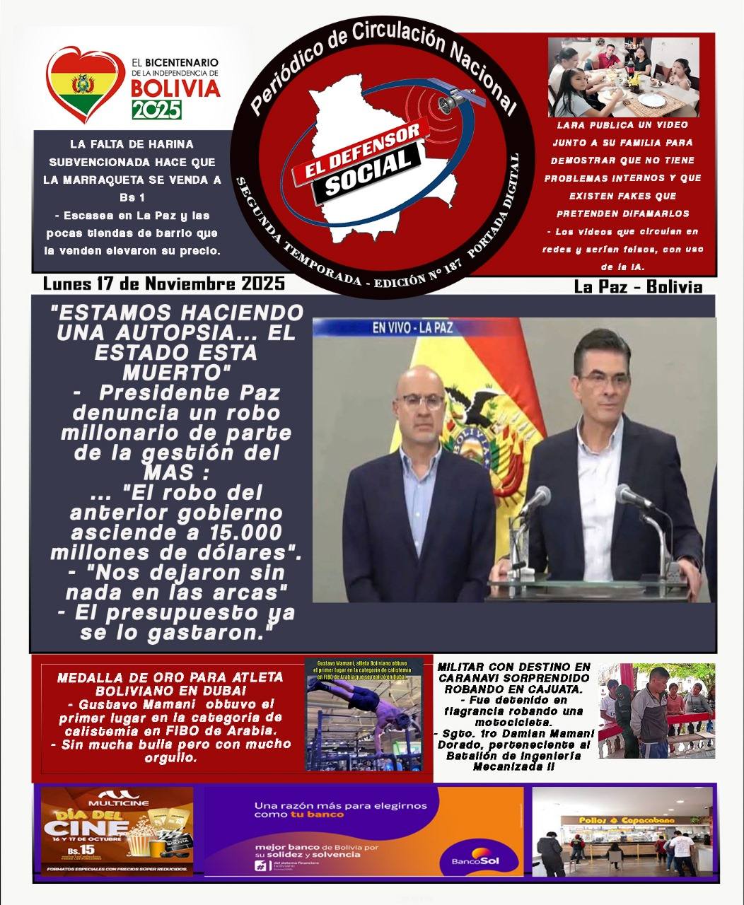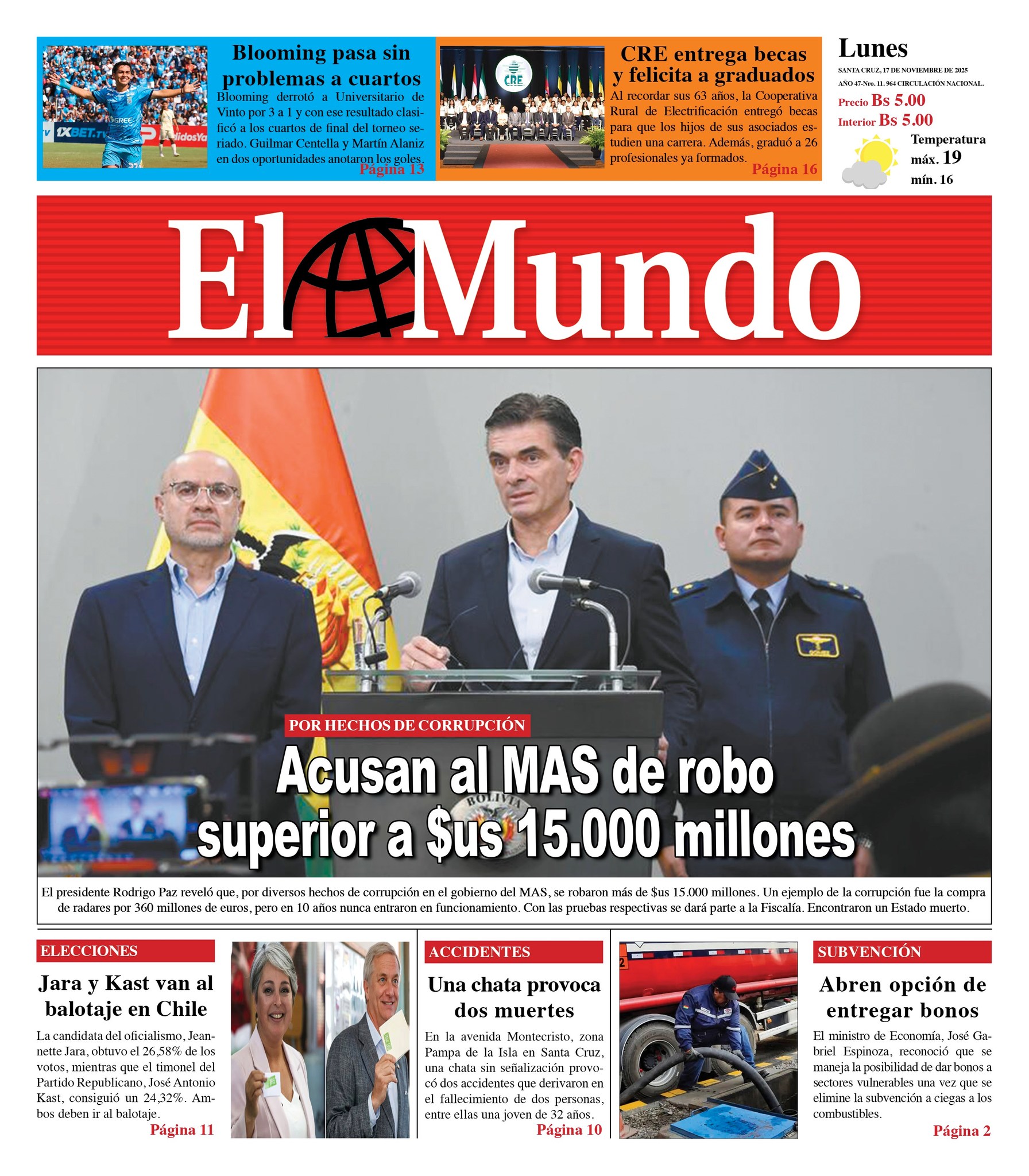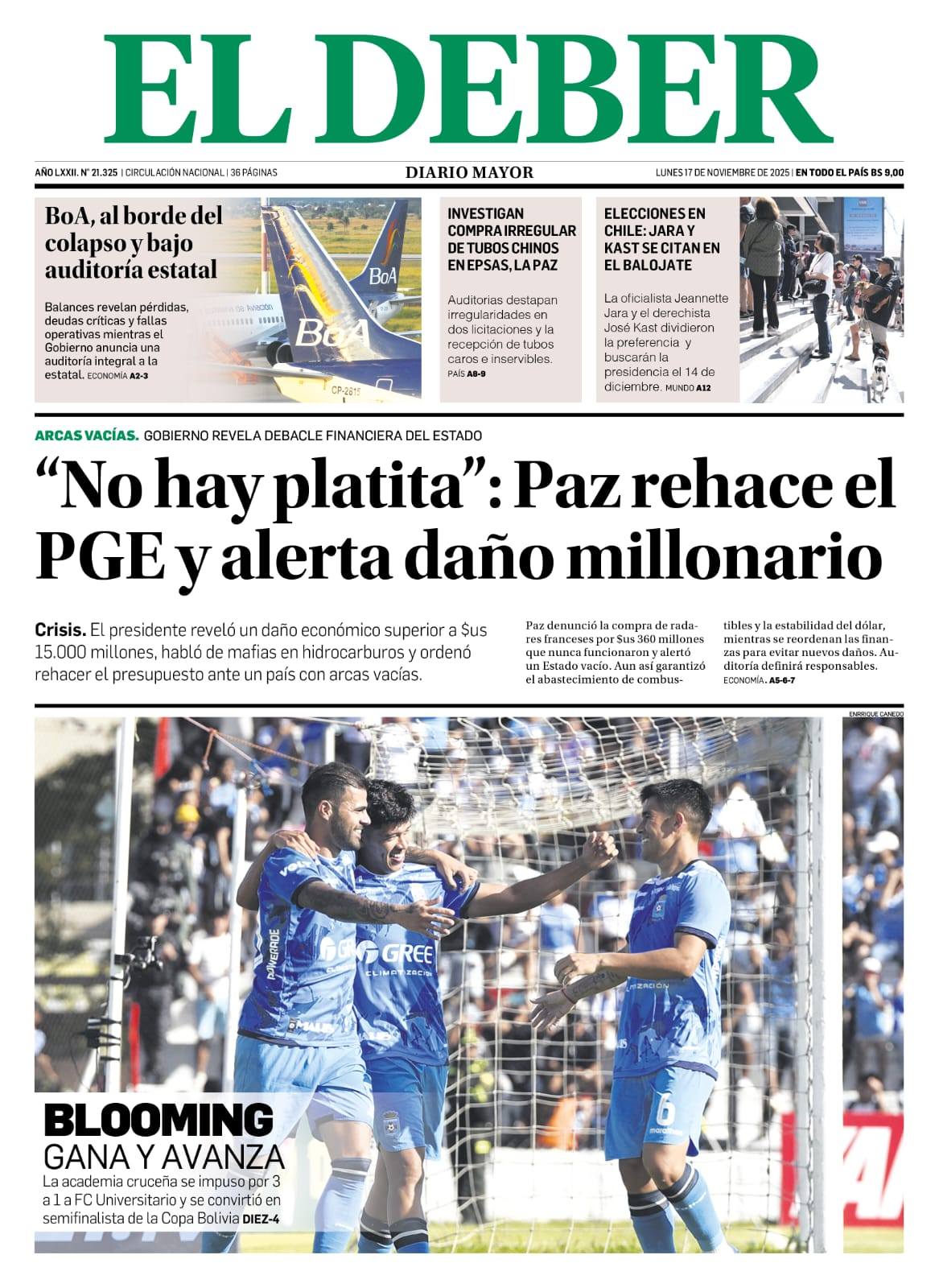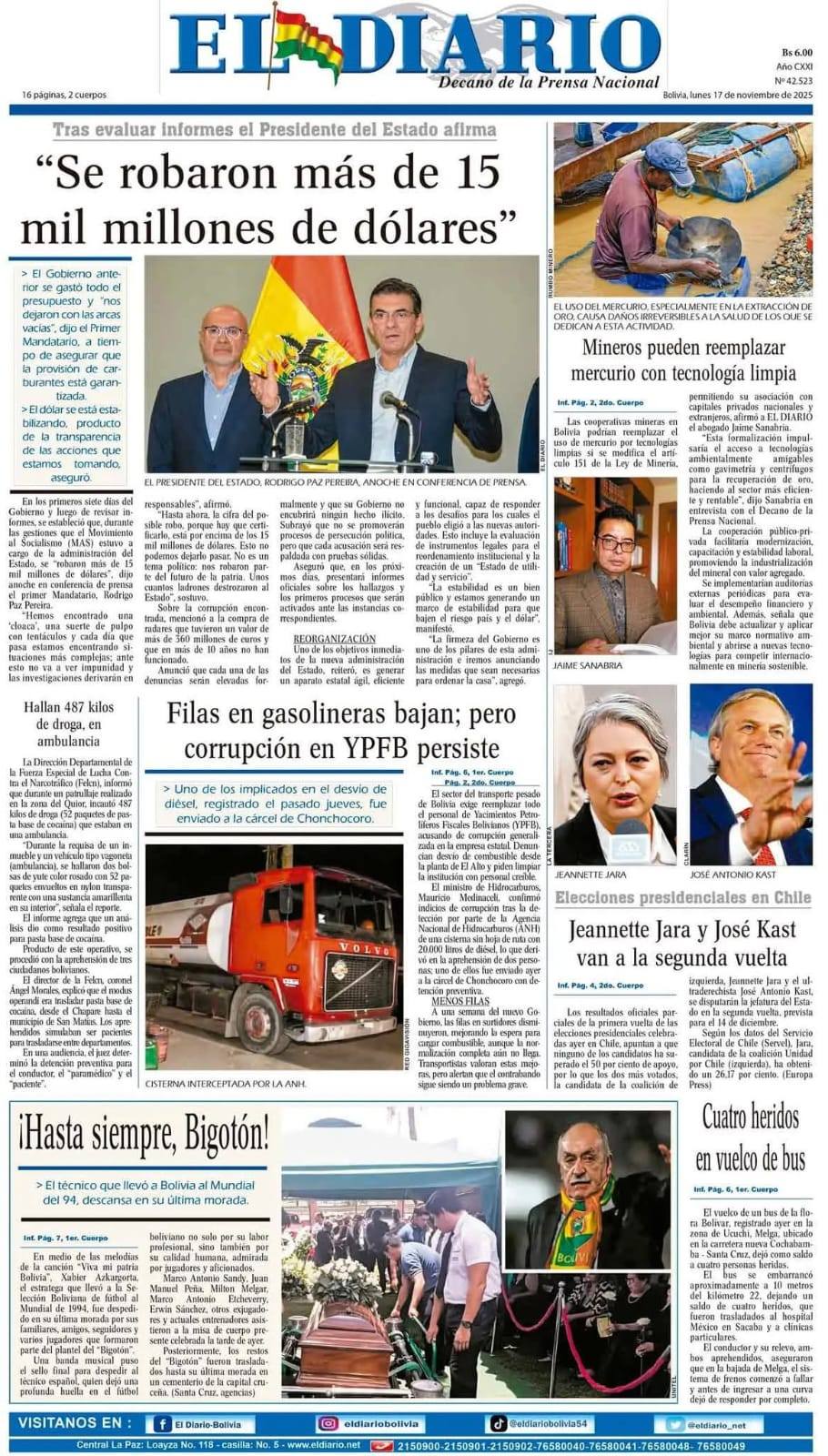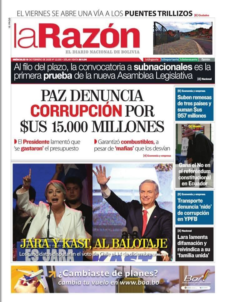 Fuente: El Deber, El Día, Zona Norte, La Palabra, La Razón, El Alteño, La Prensa, Ahora El Pueblo, La Estrella del Oriente, El Mundo, Los Tiempos, La Voz, Contraparte, Andaluz, El Potosí, Correo del Sur, El País, El Periódico, El Diario, Amitel Pres, Opinión, Caja Negra, Novavox.