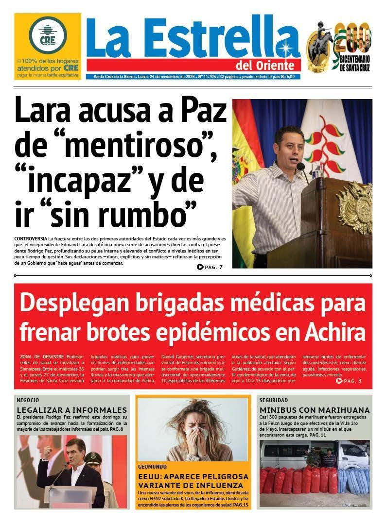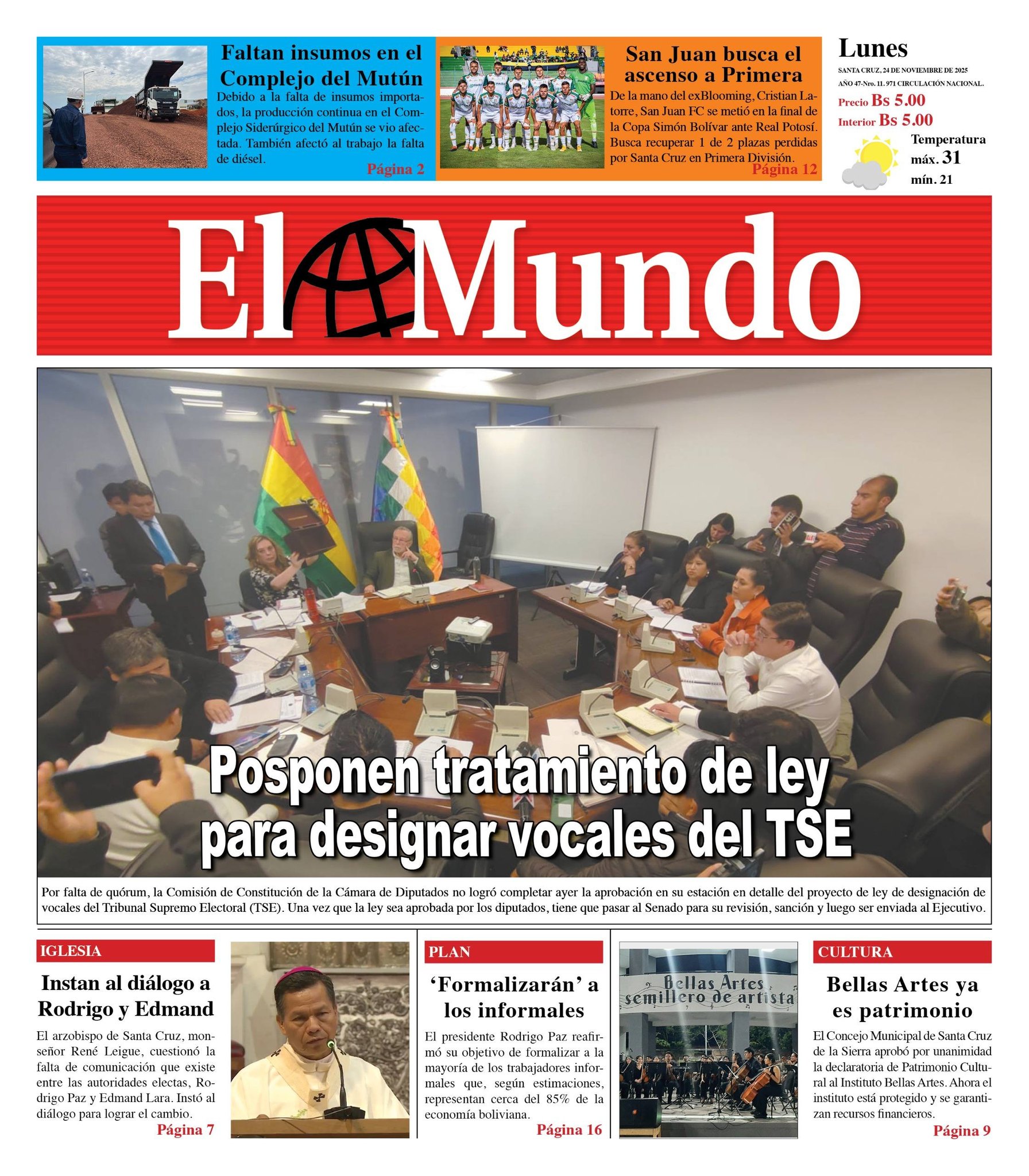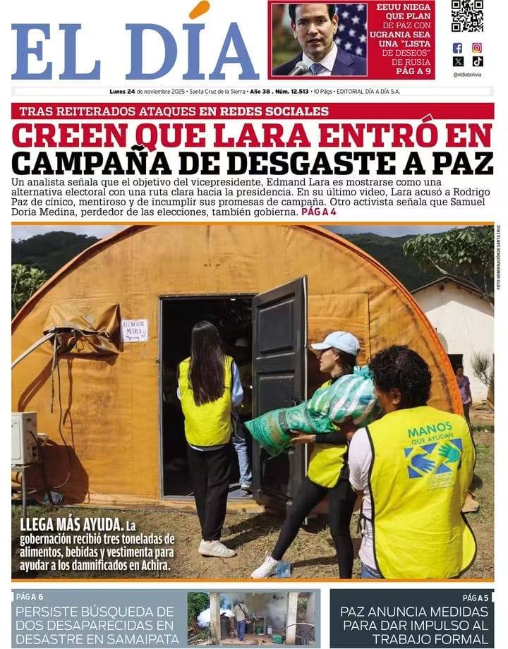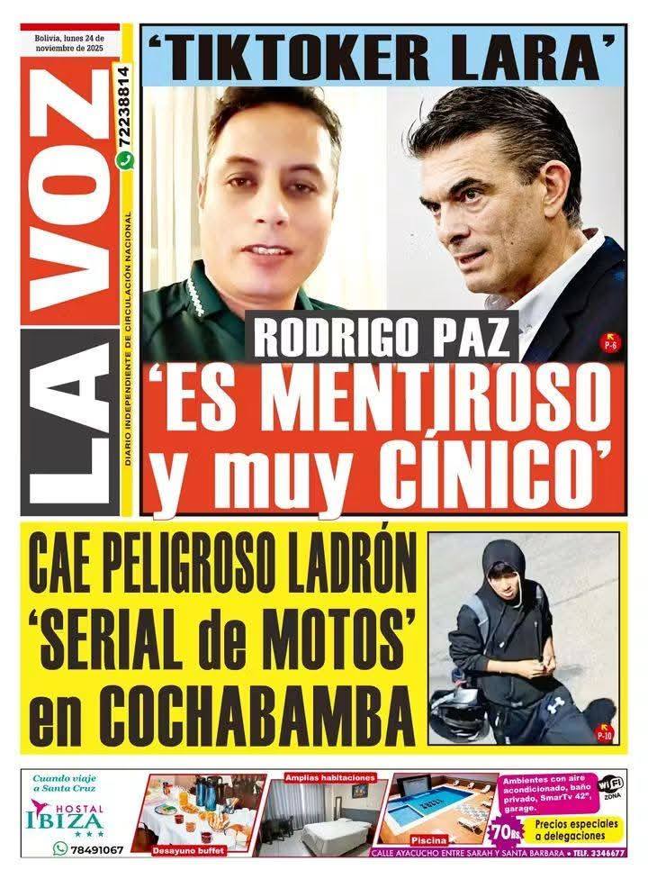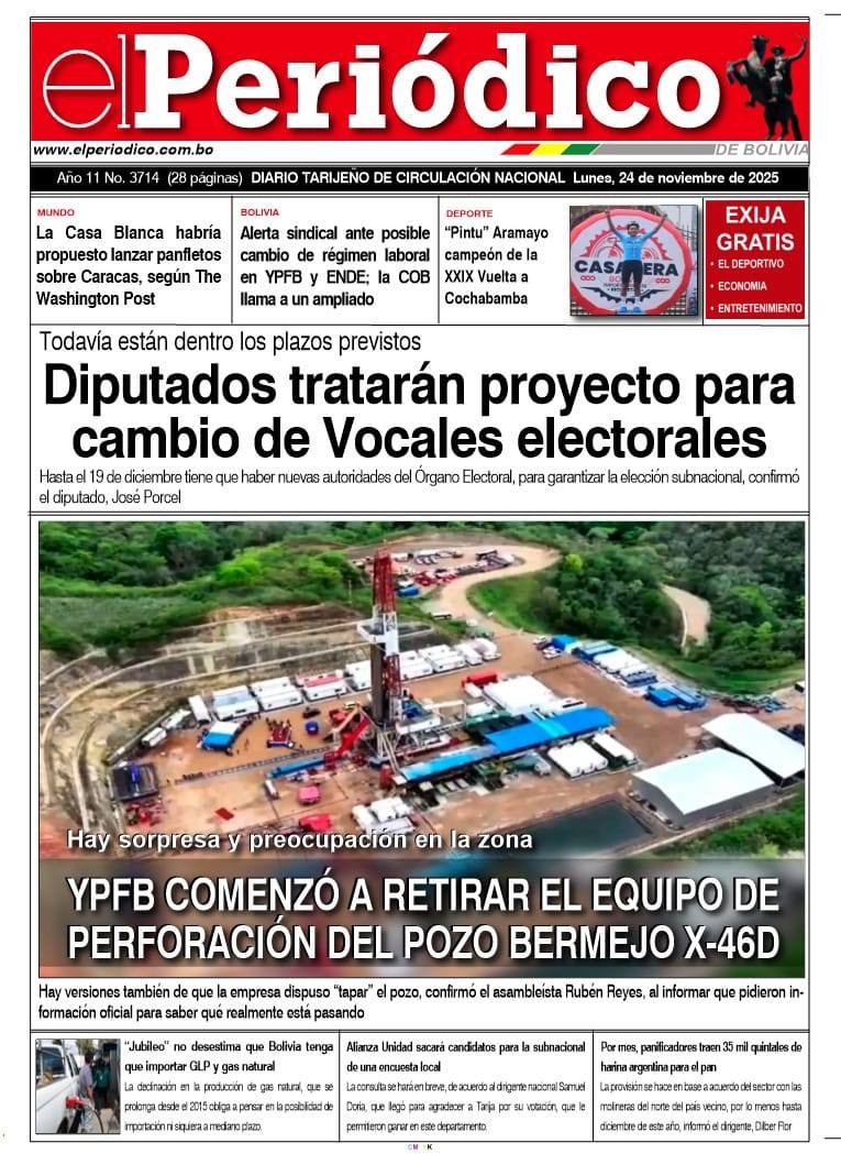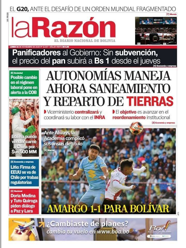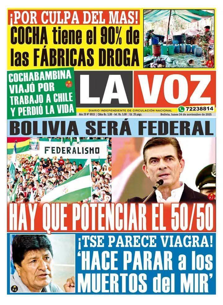 Portadas de los periódicos de Bolivia del lunes 24 de noviembre del 2025