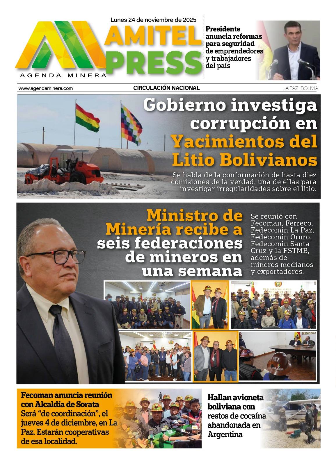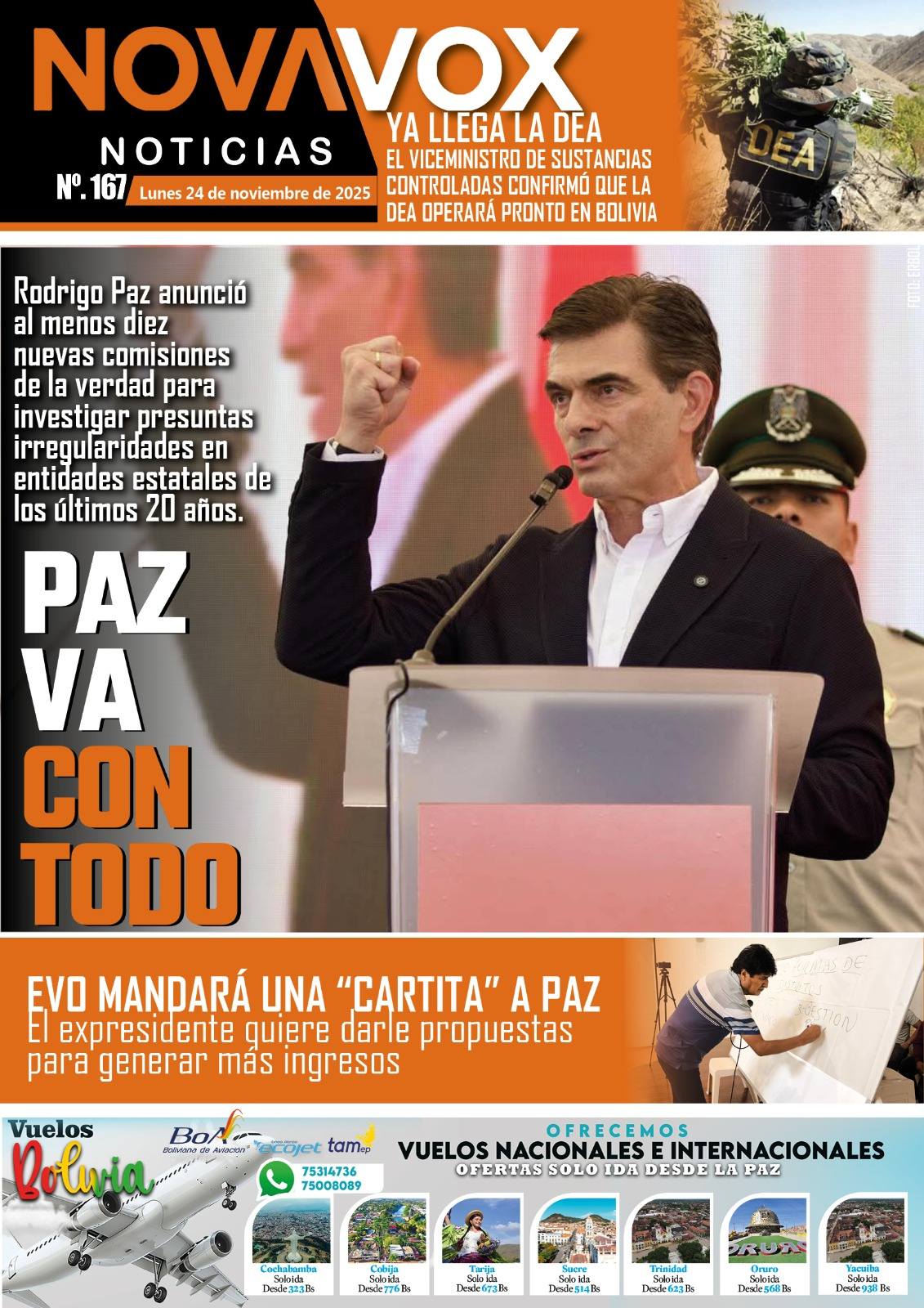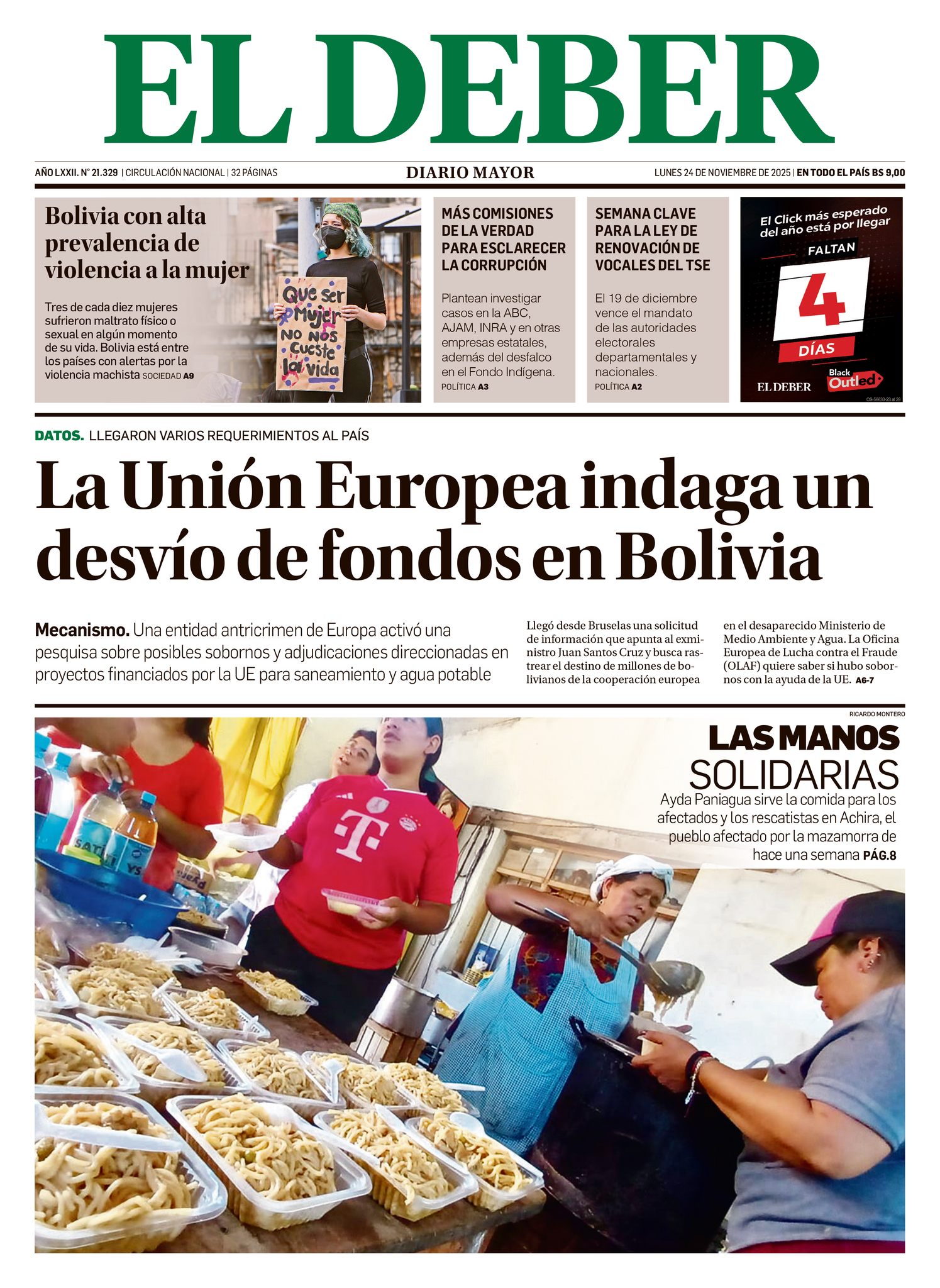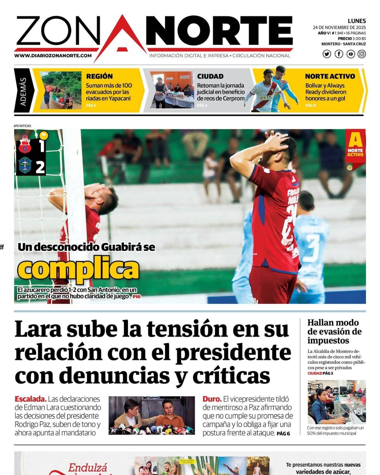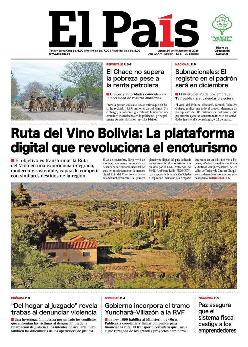 Portadas de los periódicos de Bolivia del lunes 24 de noviembre del 2025
