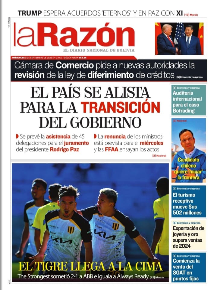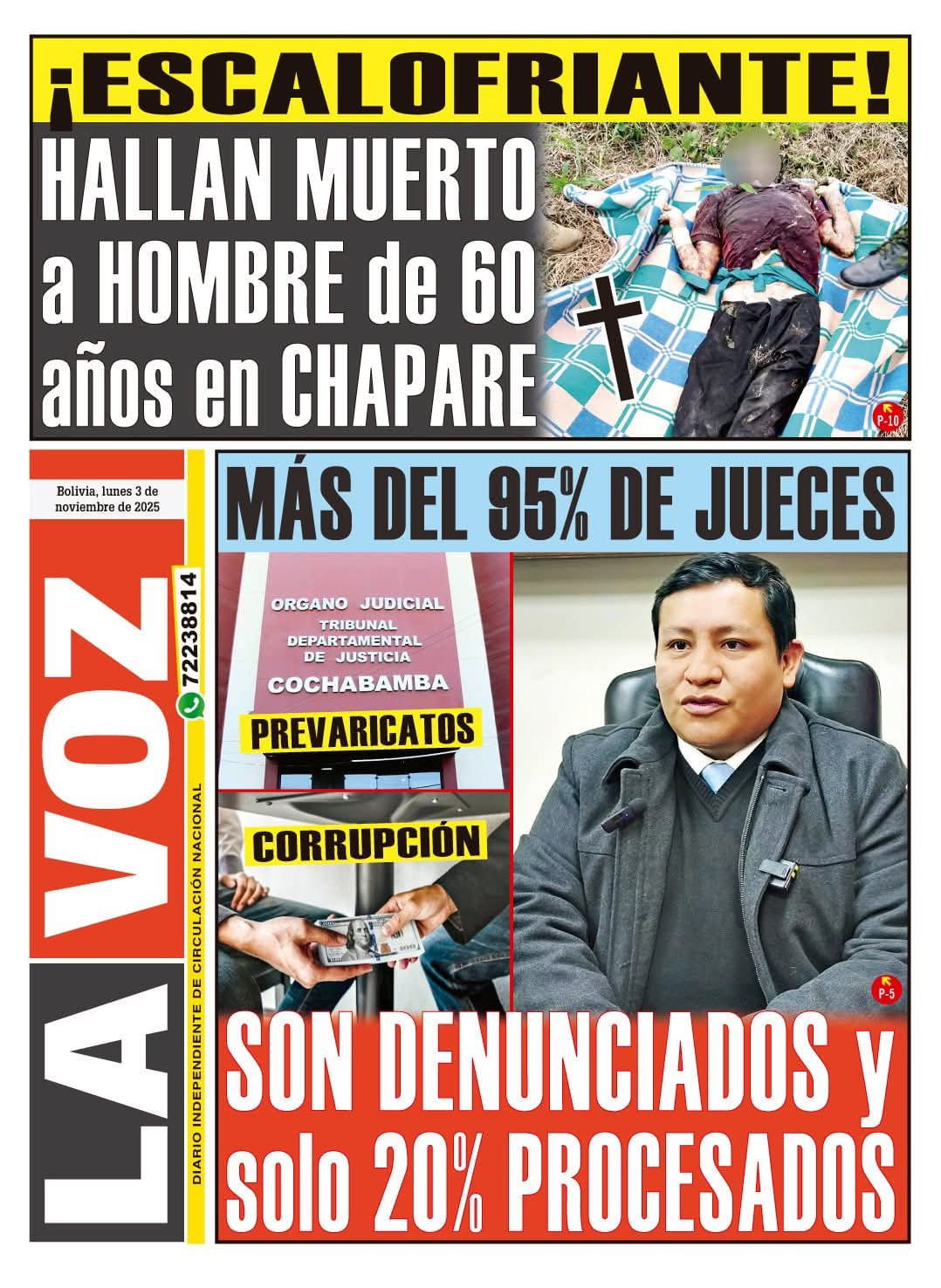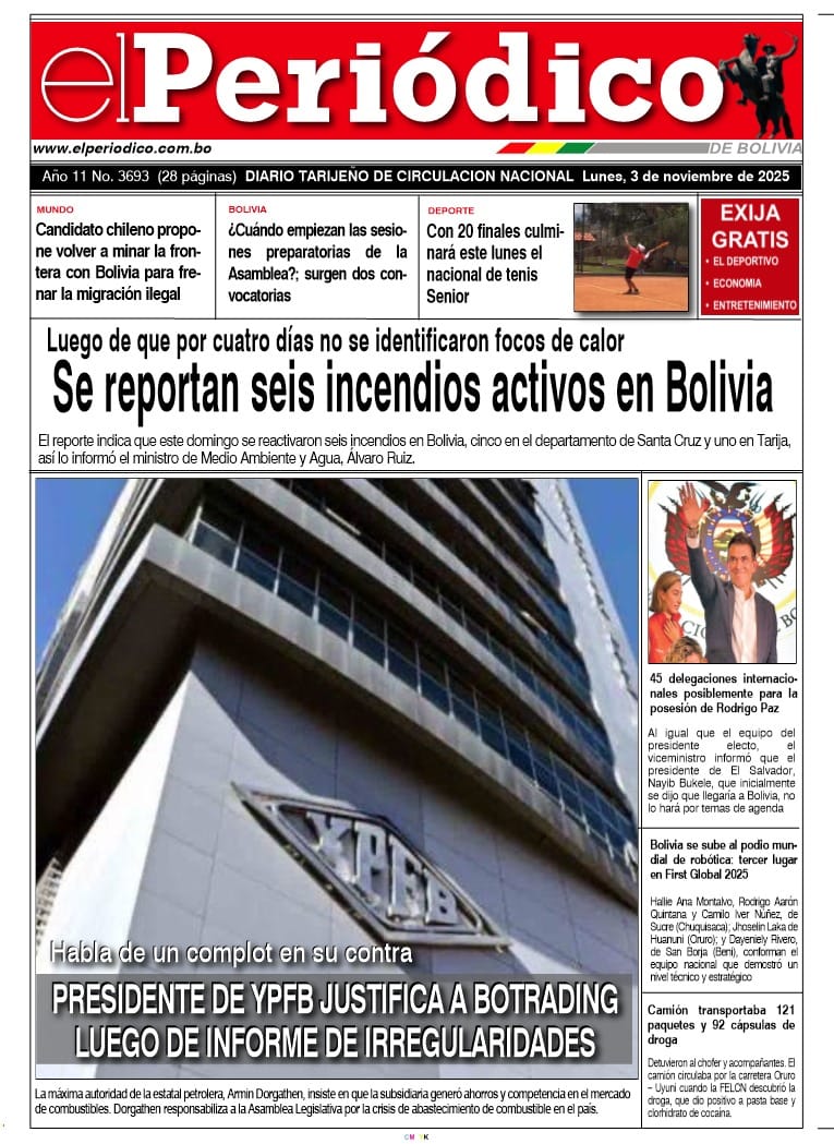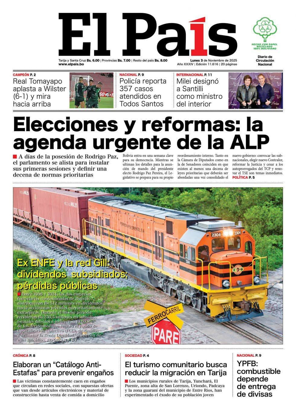 Portadas de los periódicos de Bolivia del lunes 3 de noviembre del 2025Categorías MonitoreoEtiquetas 03/11/2025 Fuente: eju.tv eju.tv