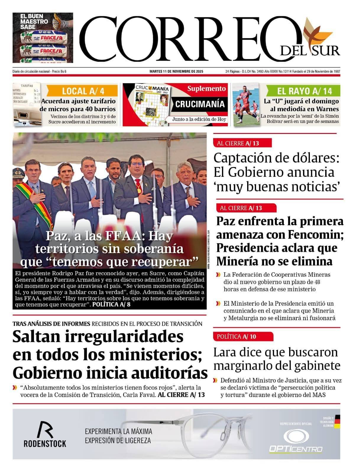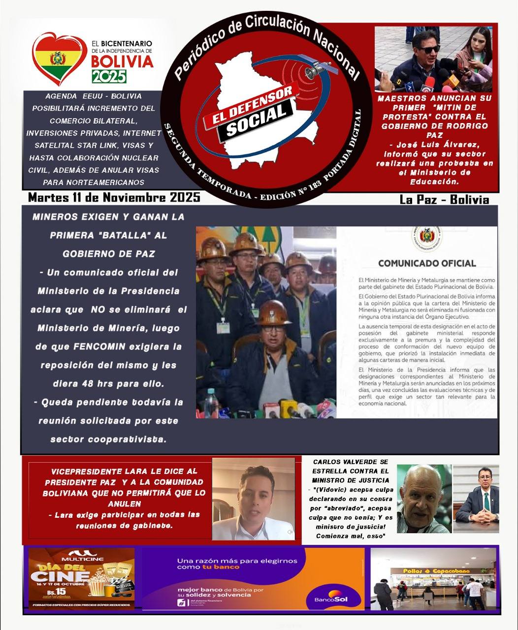 Fuente: El Deber, El Día, Zona Norte, La Palabra, La Razón, El Alteño, La Prensa, Ahora El Pueblo, La Estrella del Oriente, El Mundo, Los Tiempos, La Voz, Contraparte, Andaluz, El Potosí, Correo del Sur, El País, El Periódico, El Diario, Amitel Pres, Opinión, Caja Negra, Novavox.