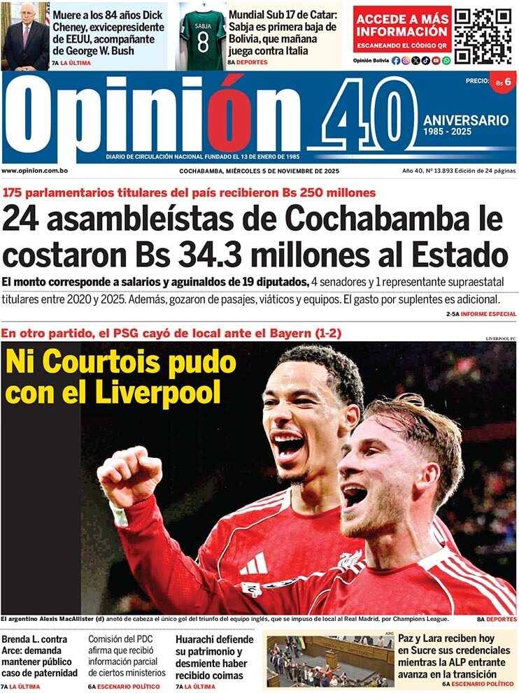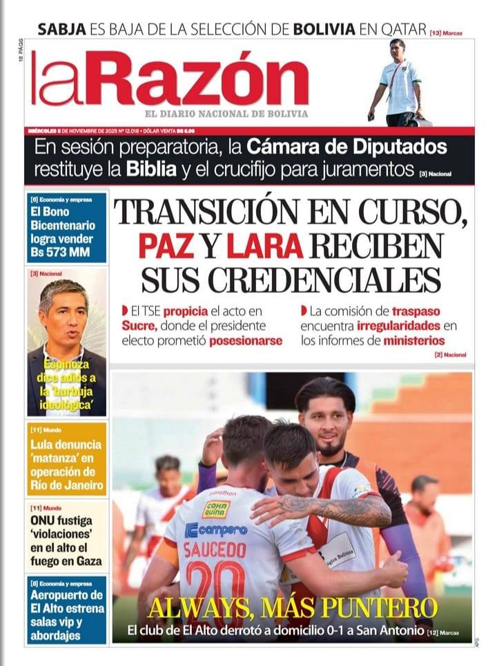 Fuente: El Deber, El Día, Zona Norte, La Palabra, La Razón, El Alteño, La Prensa, Ahora El Pueblo, La Estrella del Oriente, El Mundo, Los Tiempos, La Voz, Contraparte, Andaluz, El Potosí, Correo del Sur, El País, El Periódico, El Diario, Amitel Pres, Opinión, Caja Negra, Novavox.