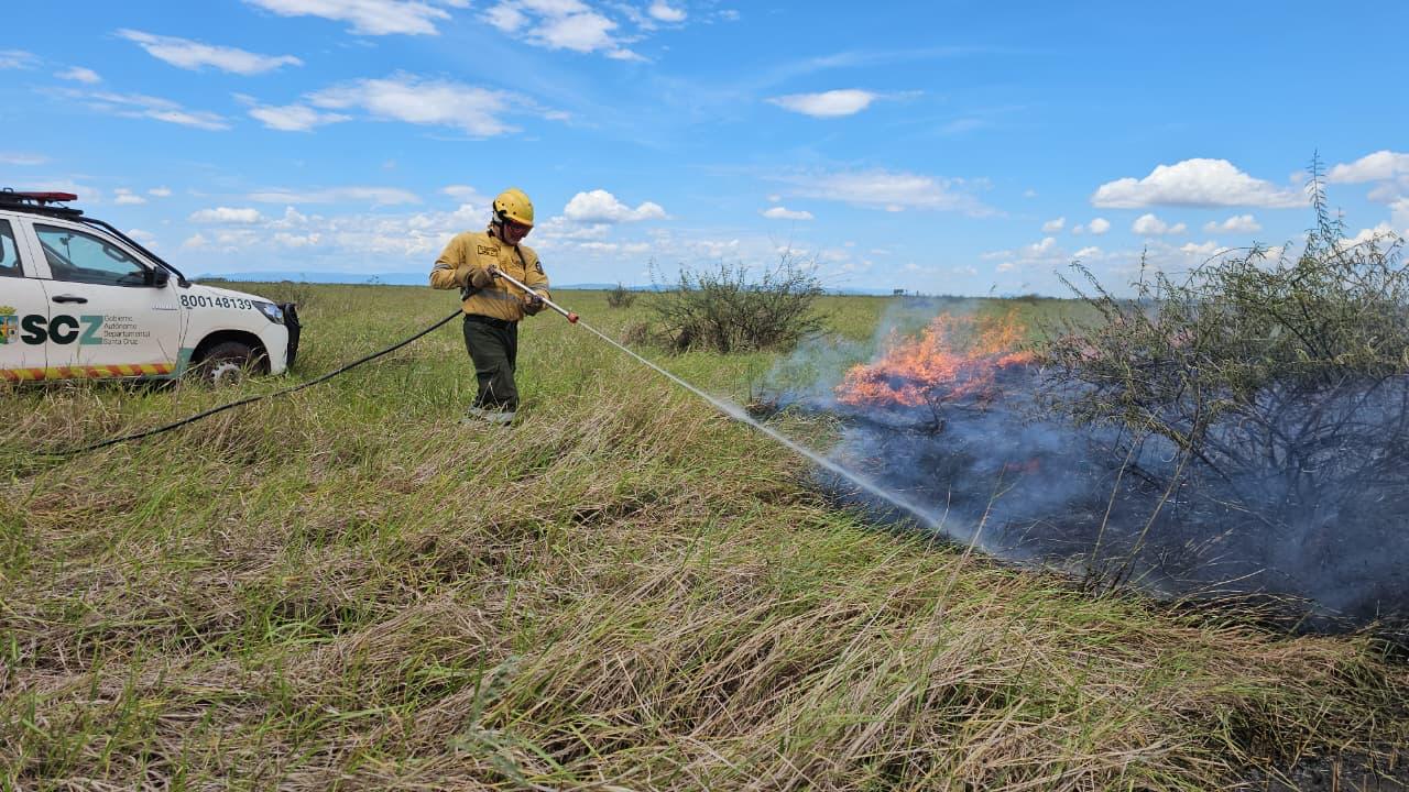 Acción. Por instrucción del gobernador Luis Fernando Camacho, la Comisión de Primera Respuesta de la Gobernación de Santa Cruz continúa realizando intensos trabajos de control y contención del incendio que afecta al Parque Nacional Otuquis, en la frontera con Brasil y Paraguay.
