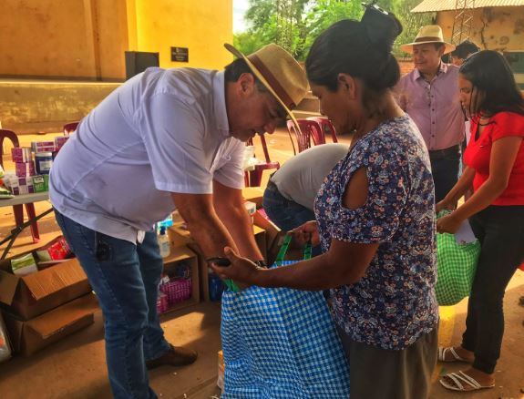 Asistencia. Son 17 toneladas, entre alimentos y agua, que se entregó en dicho municipio, además de atención médica para atender a la población; una excavadora que realizará labores de acondicionamiento de una laguna para evitar posteriores rebalses e inundaciones.