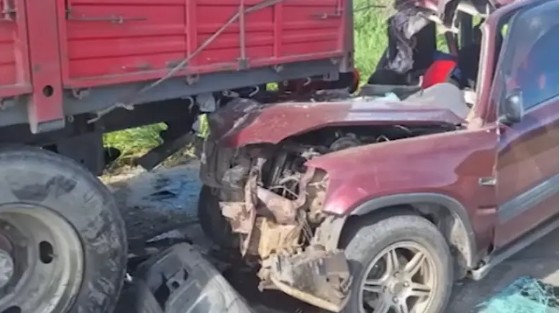 Según las primeras investigaciones, un vehículo rojo impactó violentamente contra la parte trasera izquierda de un camión que se encontraba estacionado a un costado de la carretera.
