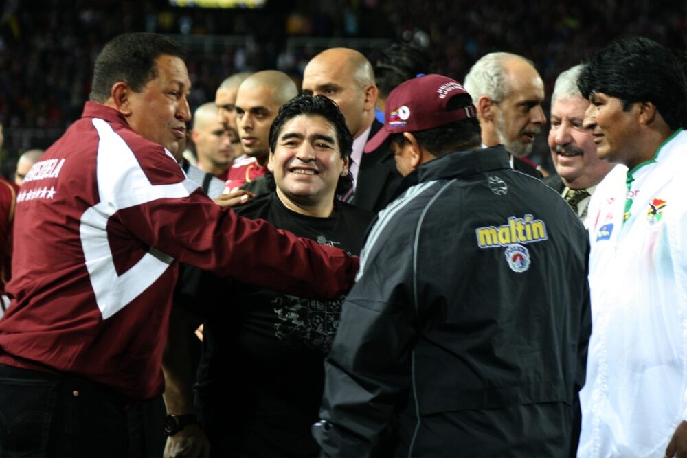 En Mar del Plata, Maradona estrechó además su vínculo con Hugo Chávez, con quien se reunió el 4 de noviembre, en un encuentro promovido por Fidel. Chávez lo invitó a Caracas y más tarde lo llamó al escenario de la Cumbre de los Pueblos.