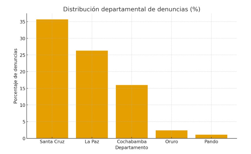 El país llega a este 25N con una distribución desigual de la violencia: Santa Cruz concentra el 35,6% de las denuncias, seguida por La Paz (26,3%) y Cochabamba (15,9%). Oruro y Pando registran los niveles más bajos, aunque ello no significa necesariamente menor riesgo, pues la cifra oculta —casos no denunciados— sigue siendo un factor crítico. La violencia física continúa siendo la más extendida, con 17.898 casos reportados este año, y la mayoría de agresores actuó sobria.