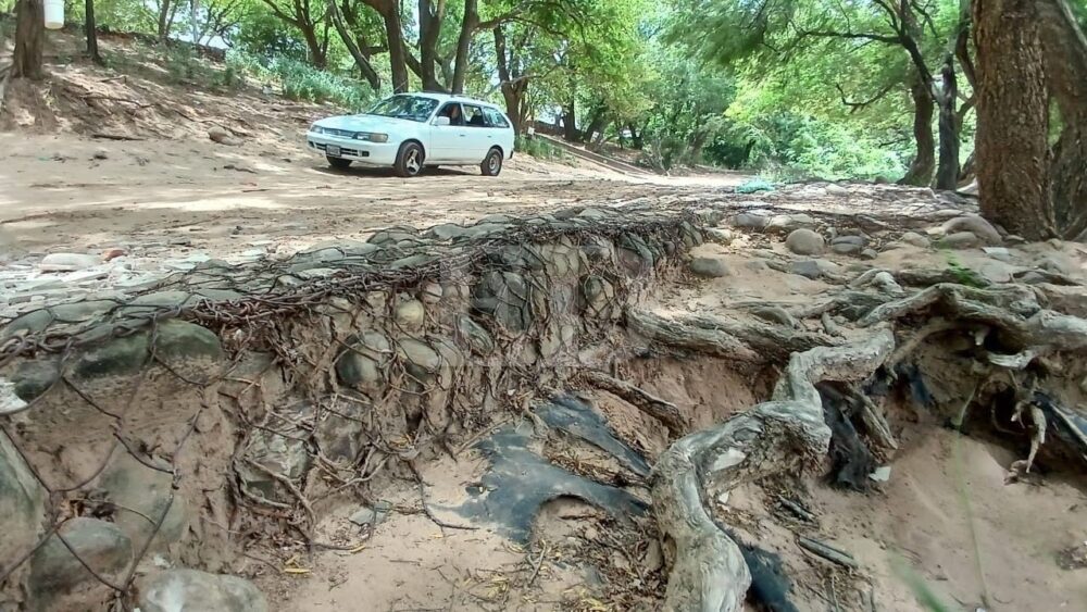 En las cabañas del Piraí, la erosión es visible. Gaviones rotos, mallas desgarradas, piedras dispersas.