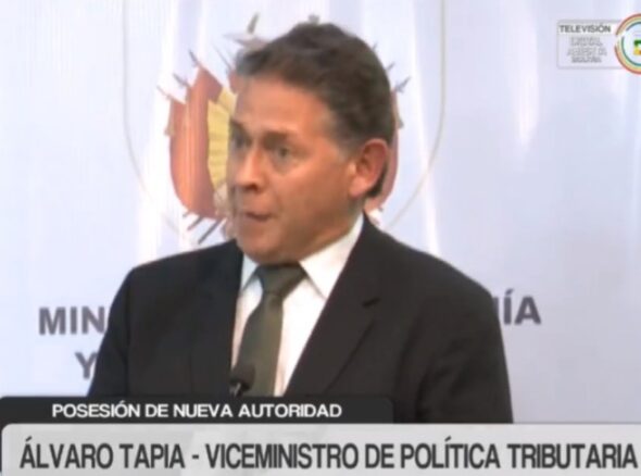 Álvaro Tapia fue posesionado este viernes como nuevo Viceministro de Política Tributaria con el desafío inicial de poner en marcha las medidas tributarias que acompañan el retiro de la subvención a los combustibles, establecidas en el decreto 5503, para favorecer a los agentes tributarios de Bolivia.