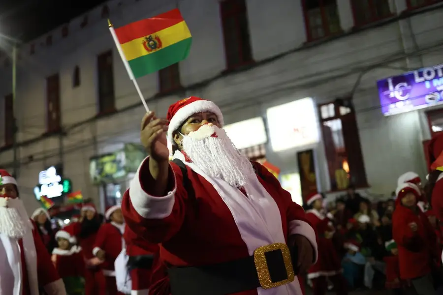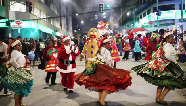 Vestidos de Papá Noel, el Grinch, duendes, pastores y muñecos de nieve, miles de comerciantes y artesanos llenaron de color y alegría las calles de La Paz durante la Caravana Navideña que marca el inicio de la temporada festiva en la ciudad.