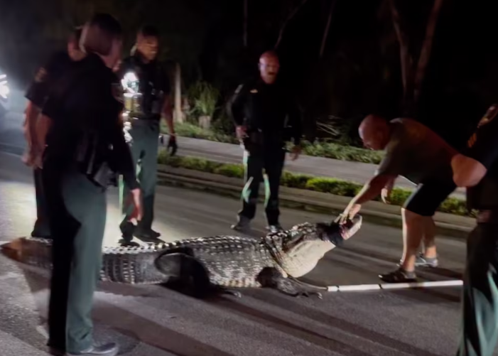 Un operativo fuera de lo común tuvo lugar esta semana en Sarasota, Florida, cuando siete agentes del alguacil y un experimentado capturador lograron retirar un enorme caimán de 600 libras (aproximadamente 272 kilos) y casi 4,3 metros de largo que bloqueaba una transitada vía local.
