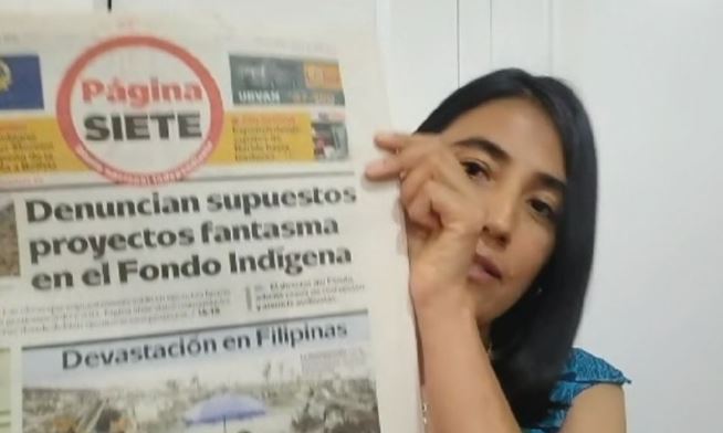 La periodista recordó que su primer reportaje, “Denuncian supuestos proyectos fantasmas en el Fondo Indígena”, publicado el 11 de noviembre de 2013 en Página Siete, expuso por primera vez el desfalco y abrió la cobertura periodística que permitió revelar la magnitud de la corrupción.