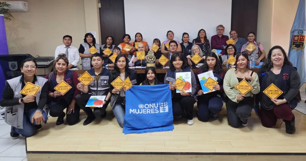 ONU Mujeres y la Unión Europea participaron en la presentación formal del proyecto de Ley Municipal de Prevención contra el Acoso Callejero en Sacaba, Cochabamba, junto a autoridades del Gobierno Autónomo Municipal de Sacaba y la Unidad de Juventudes y la Red de Lucha contra la Violencia.