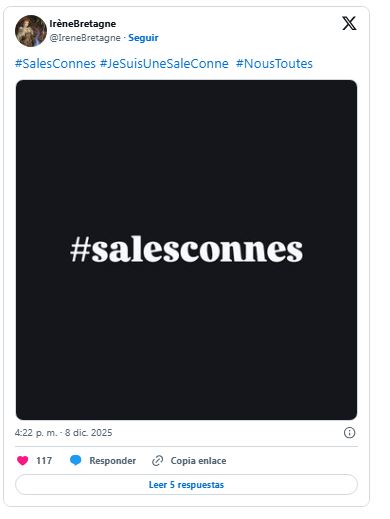 El colectivo feminista responsable de la acción del sábado, #NousToutes, hizo del insulto una etiqueta, que llegó a ser ampliamente compartida en las redes como muestra de apoyo.