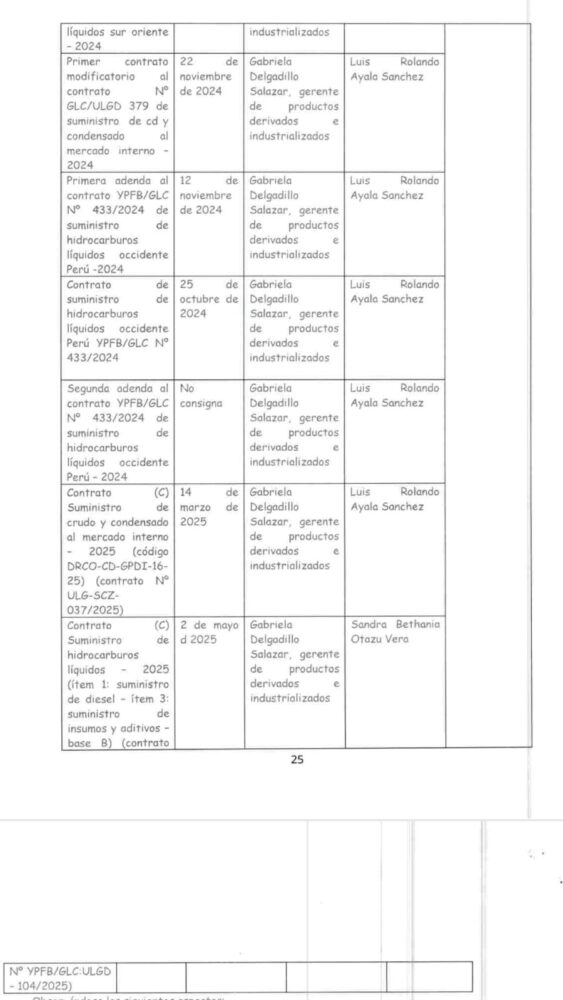 De acuerdo a una revisión que hizo este medio a los contratos publicados en el Sistema de Contrataciones Estatales (Sicoes), desde 2023 hasta octubre de 2025, la empresa se adjudicó 14 contratos por $us 960,4 millones para el suministro de combustible a la estatal petrolera.