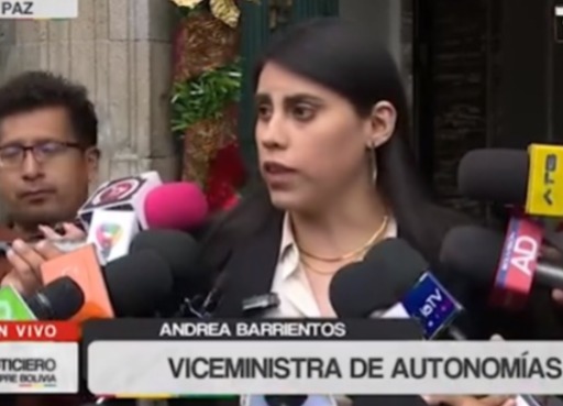 Viceministra de Autonomías, Andrea Barrientos. Foto archivo: Captura de imagen