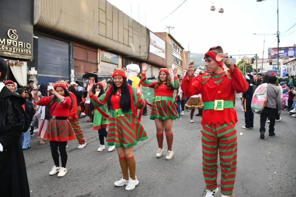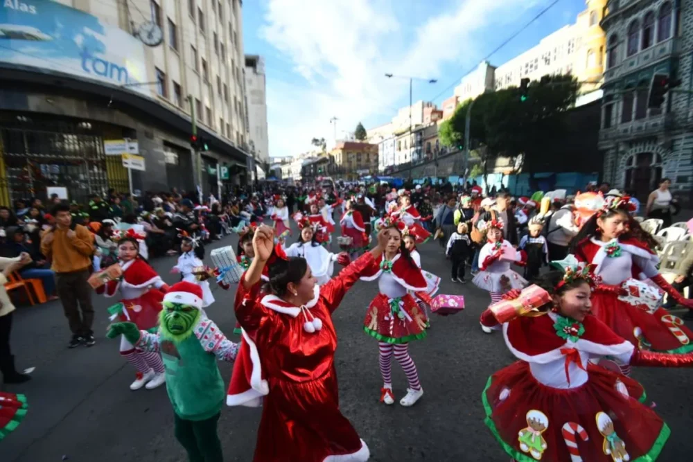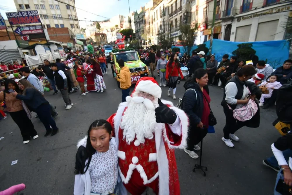 La ciudad de La Paz vivió este sábado el desfile navideño organizado por la Alcaldía, donde participan 182 grupos y 135 carros alegóricos que recorrieron el centro paceño con música, disfrases y mucha alegría.