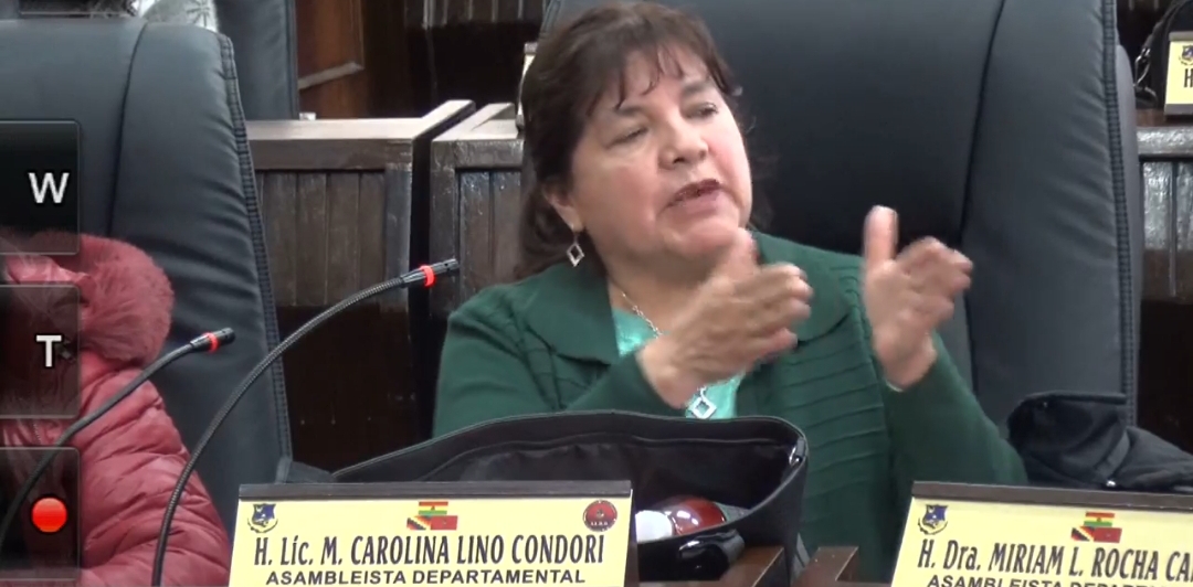 La asambleísta Carolina Lino durante la sesión de la Asamblea Legislativa Departamental de Oruro. Foto: Captura de pantalla