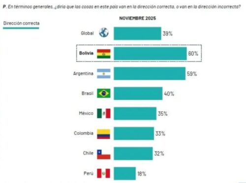 Ese resultado ubicó al país en el primer lugar con esa percepción entre siete países en los que se realizaron estudios similares. Argentina se ubicó en el segundo lugar, con el 59% de los ciudadanos que consideran que el país va en la dirección correcta.