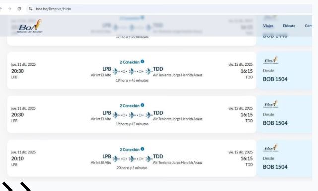 Según su denuncia, los precios que circulan en redes sociales fueron obtenidos de una captura de la página oficial de BoA, lo que evidencia el incremento en las tarifas en plena temporada alta, cuando cientos de familias buscan reunirse para celebrar las fiestas de fin de año.