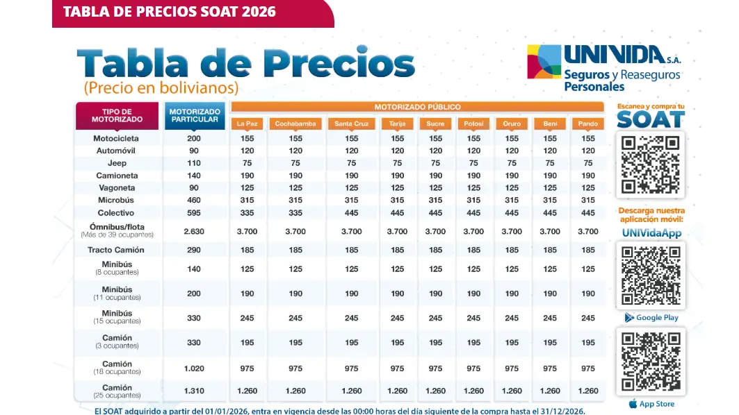 La venta del SOAT comenzó el 1 de noviembre y se extenderá hasta el 31 de diciembre de 2025. Este seguro tendrá vigencia plena a partir del 1 de enero de 2026. Además de los puntos físicos instalados en rotondas y distintos sectores de la ciudad, UNIVida habilitó canales digitales para facilitar el proceso.