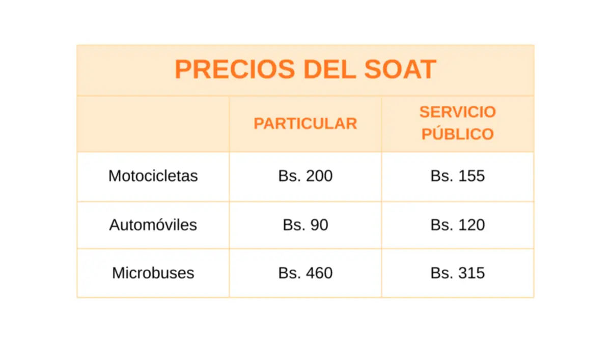 De acuerdo con la tabla oficial de precios del SOAT 2026, los montos varían según el tipo de motorizado y el uso que tenga. En el caso de los vehículos más comunes, los precios son los siguientes: