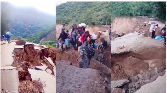 Ante la falta de paso vehicular, algunas personas optaron por cruzar a pie, exponiéndose a un alto riesgo. En videos que llegaron a la mesa de redacción de Red Uno Digital se observa a pasajeros atravesando el deslizamiento cargados con maletas, incluso con niños, avanzando con extrema precaución sobre una plataforma inestable y erosionada por las lluvias.
