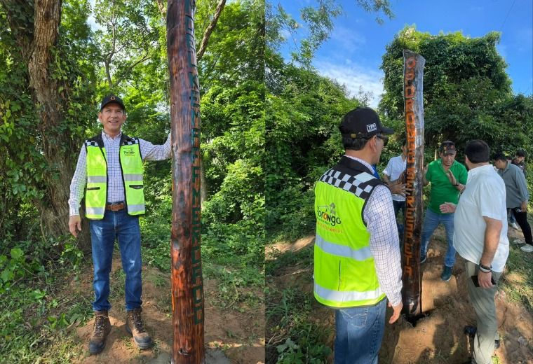 Tras sus palabras, se cavó un hueco en la tierra para colocar el mojón, que tiene grabado el nombre de Noel Kempff Mercado en la parte frontal, mientras que en la parte posterior se lee: «Porongo se respeta».