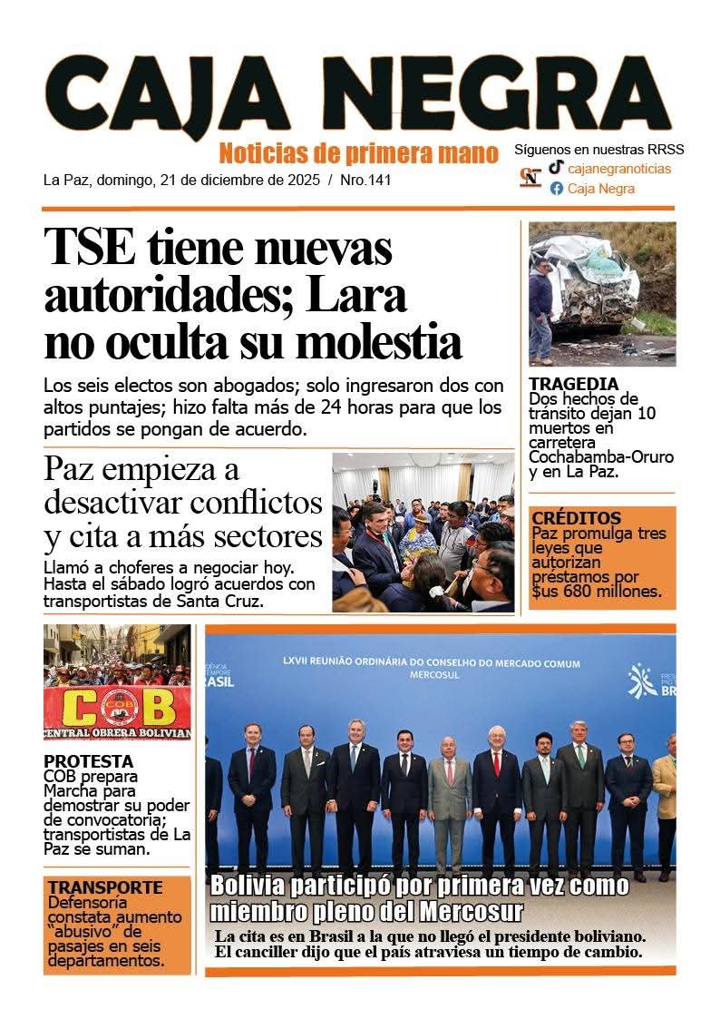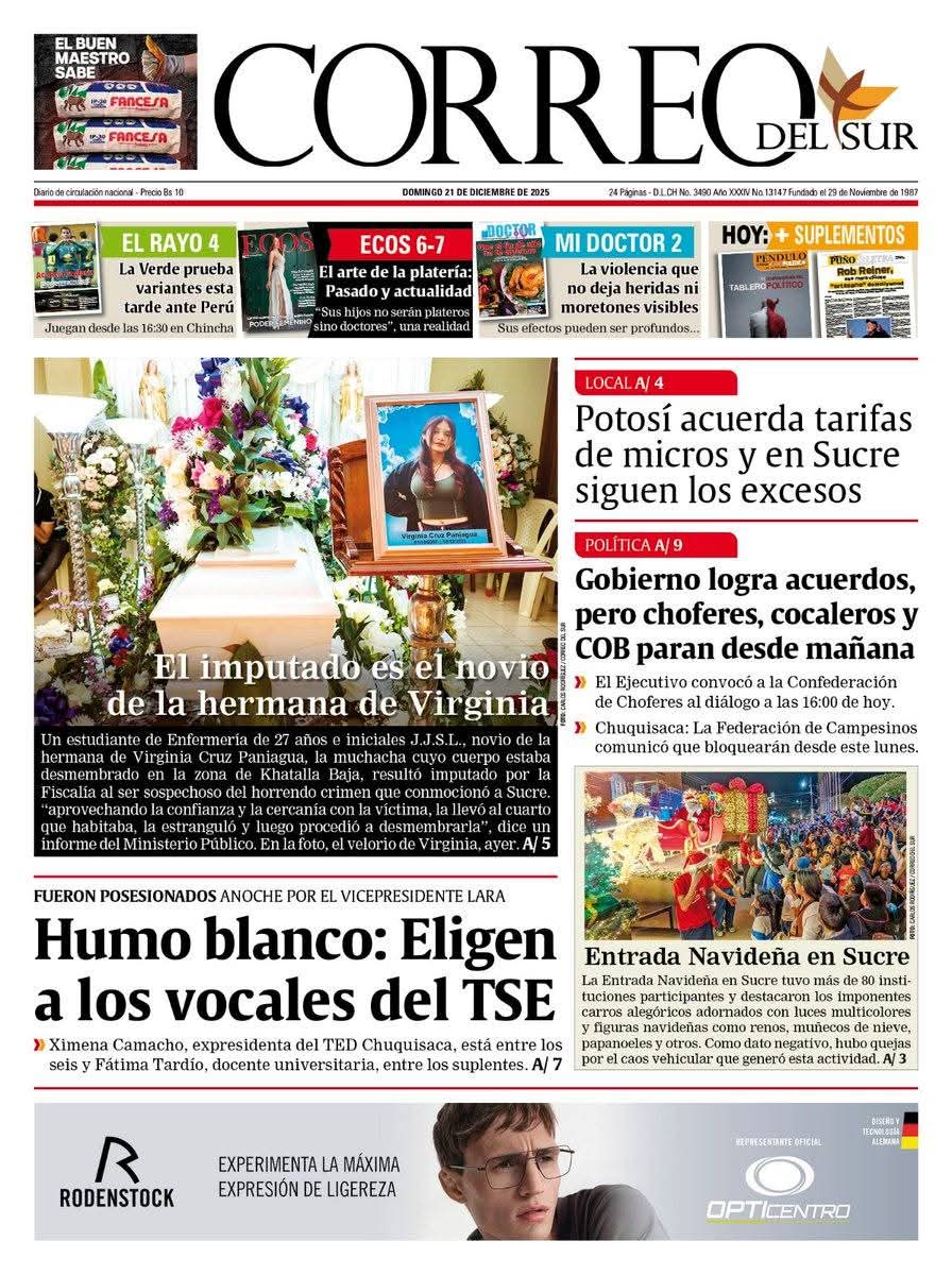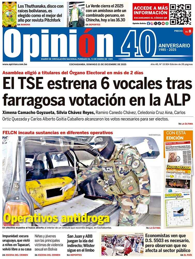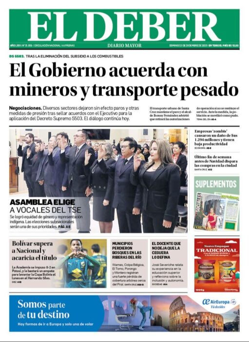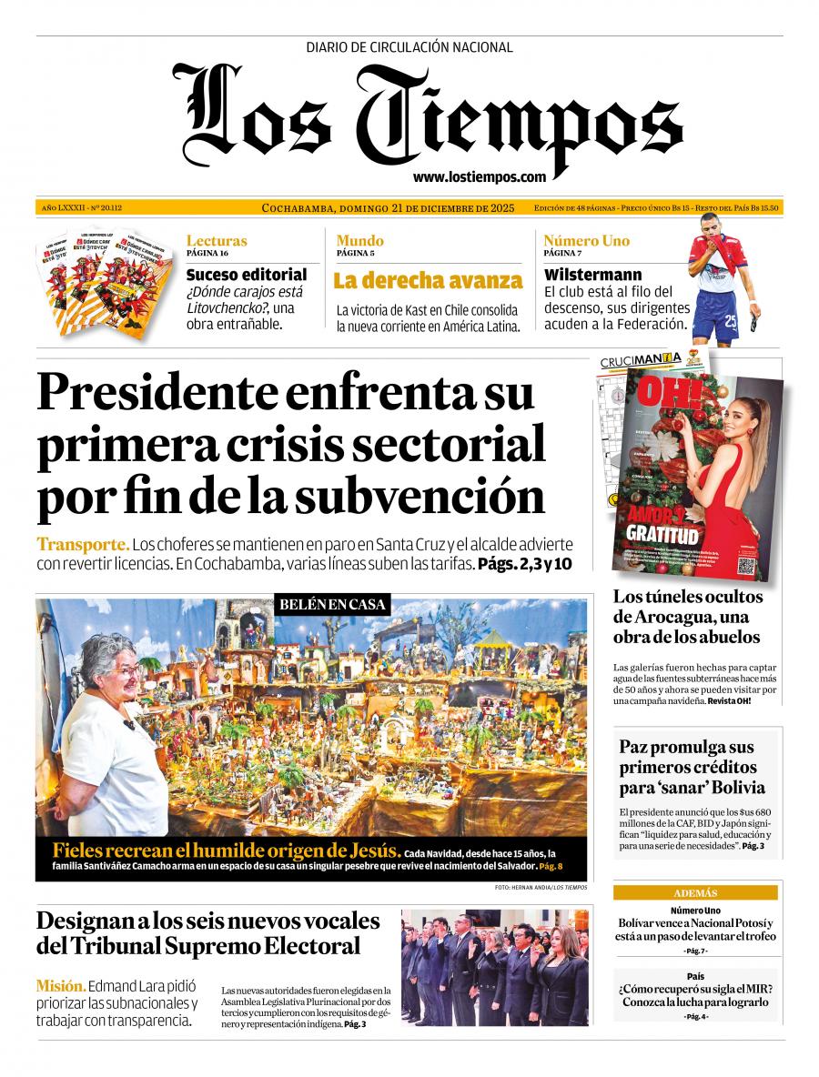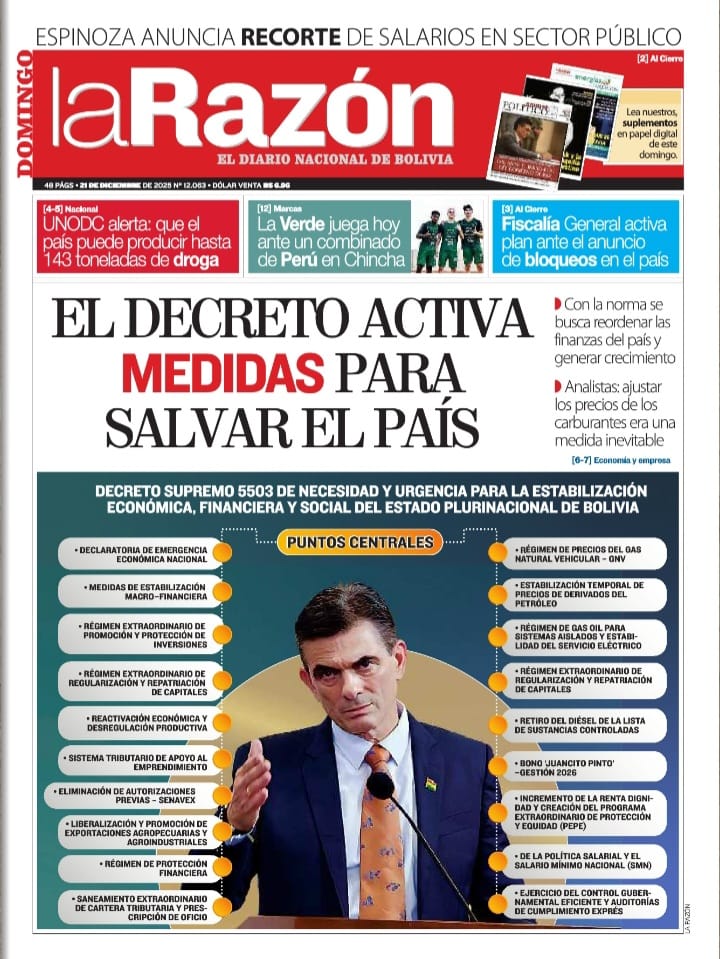 Portadas de los periódicos de Bolivia del domingo 21 de diciembre del 2025