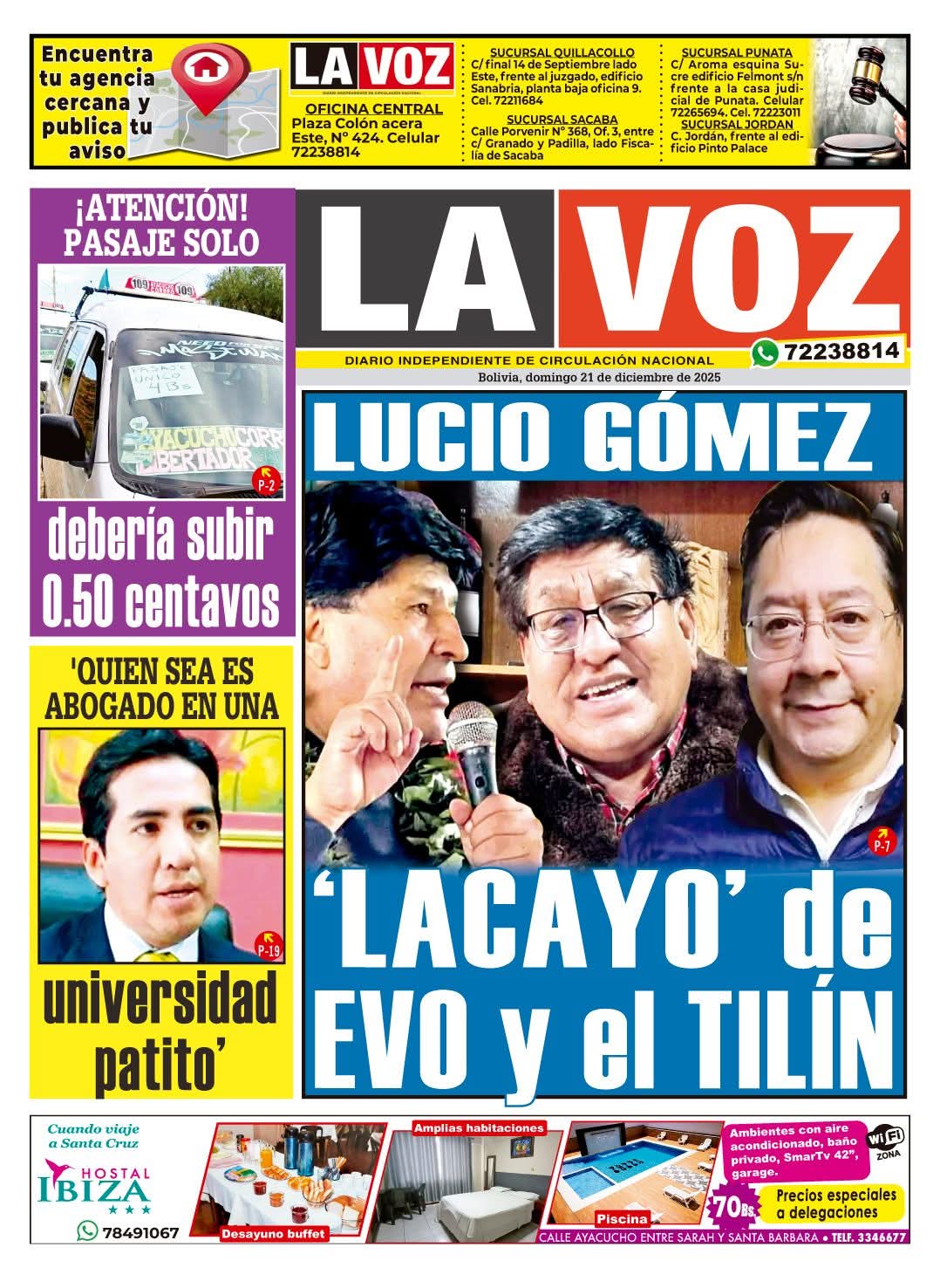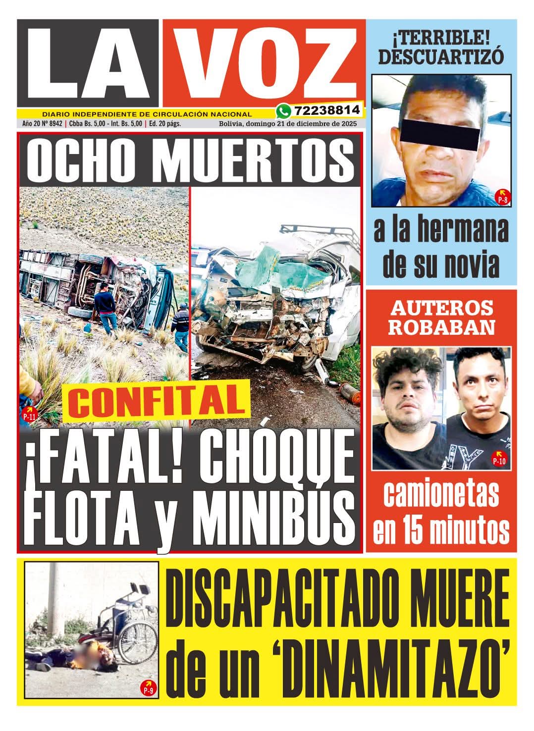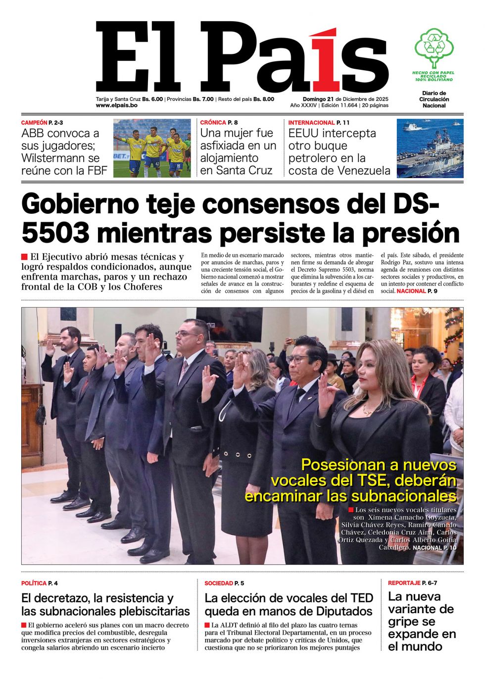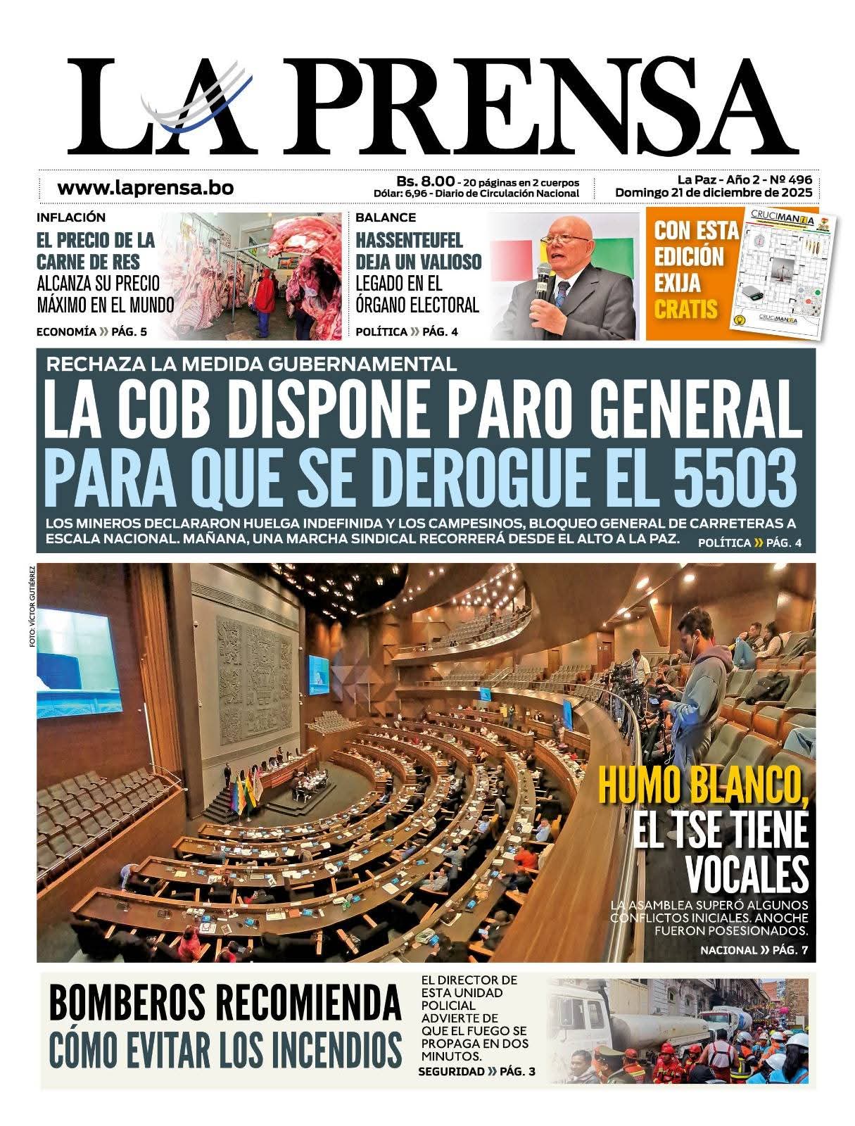 Portadas de los periódicos de Bolivia del domingo 21 de diciembre del 2025