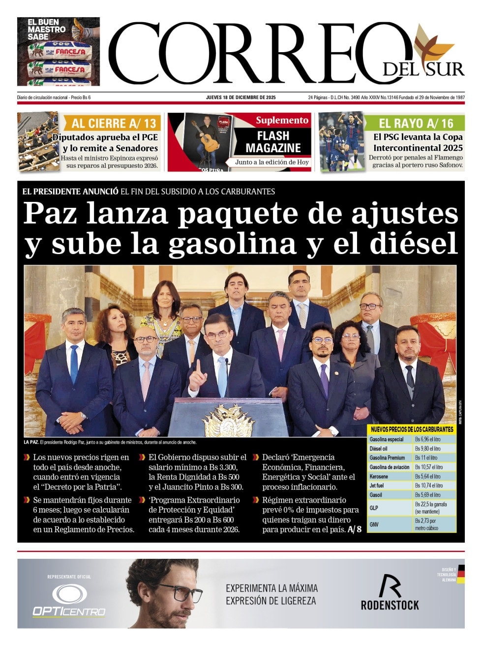Portadas de los periódicos de Bolivia del jueves 18 de diciembre del 2025