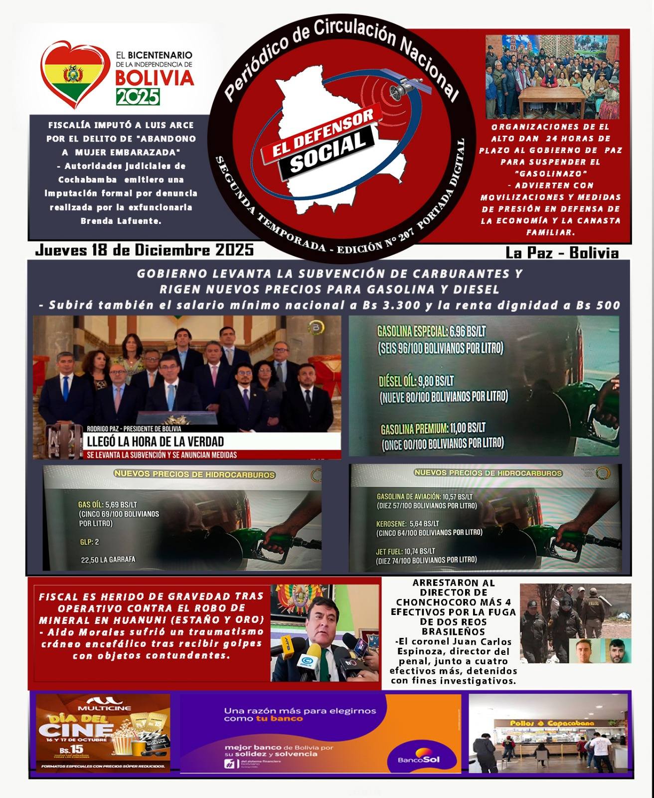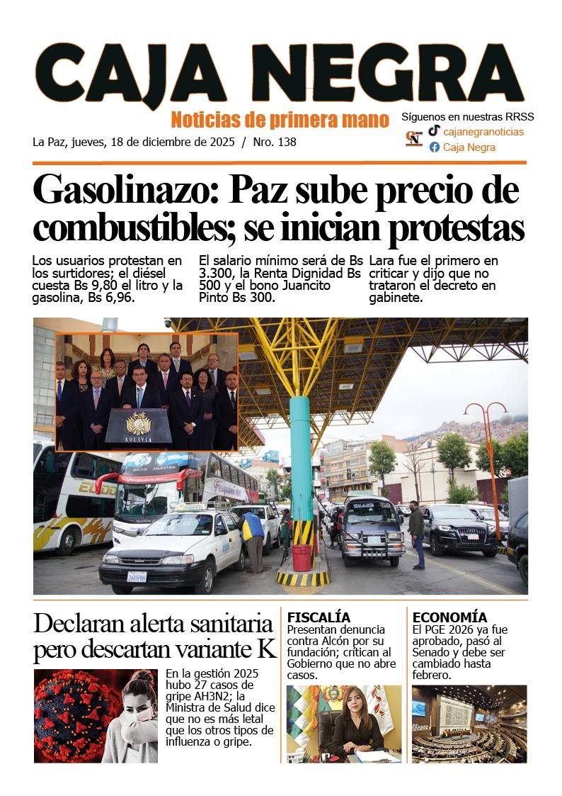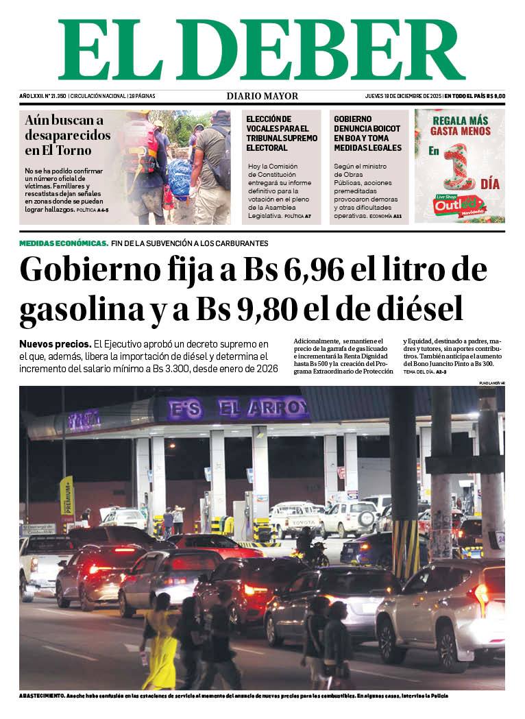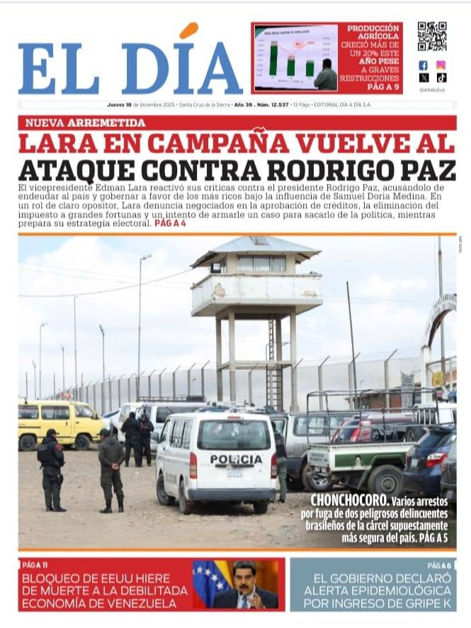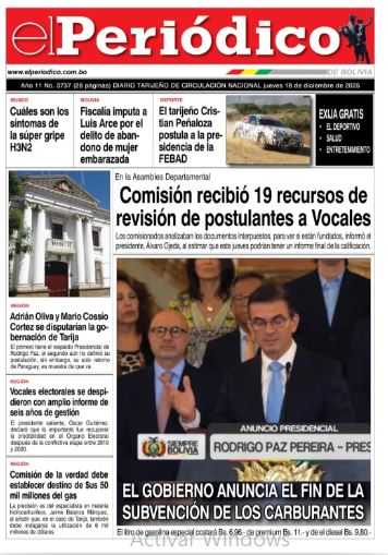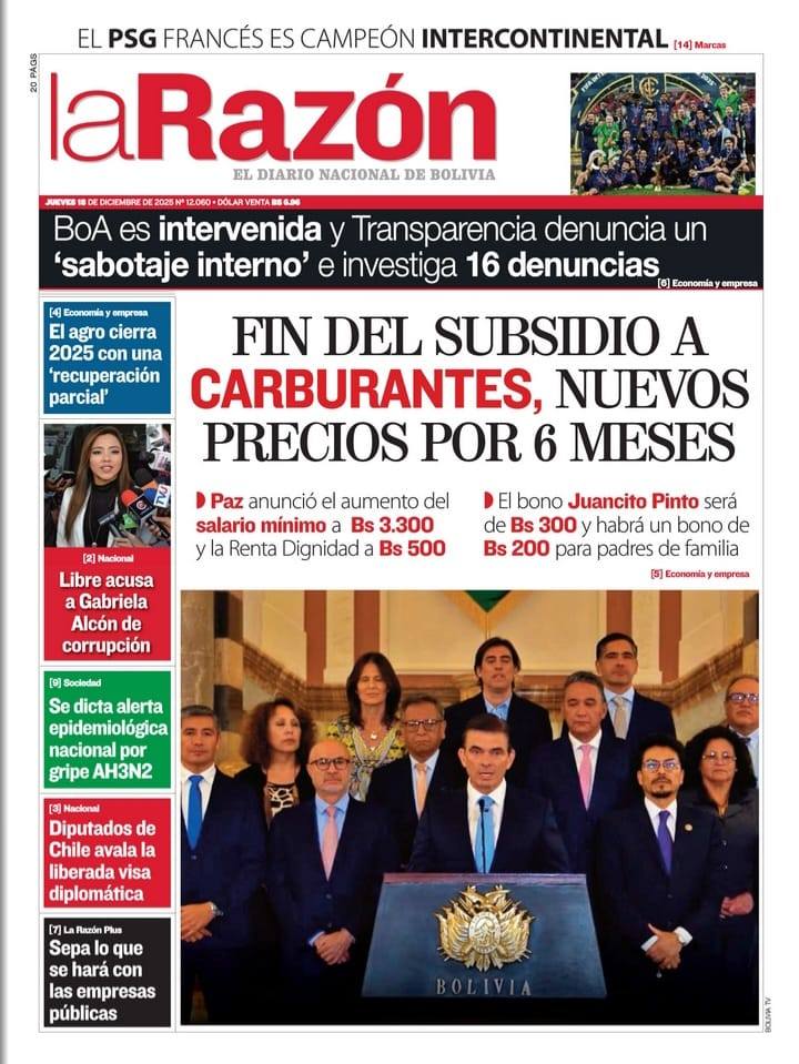 Portadas de los periódicos de Bolivia del jueves 18 de diciembre del 2025