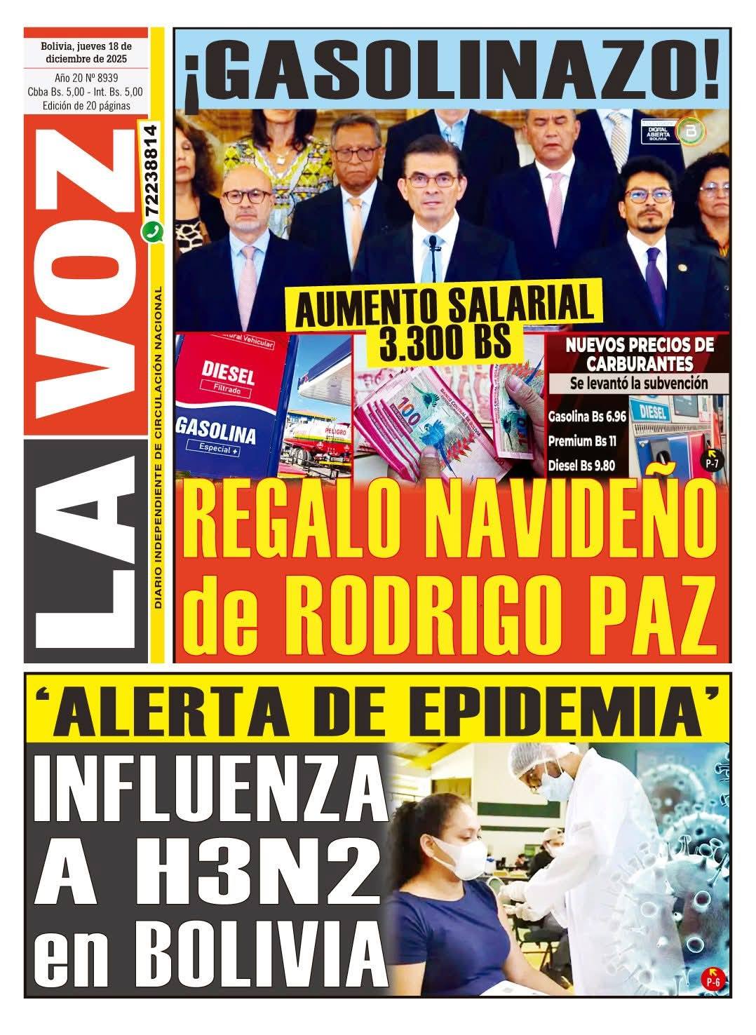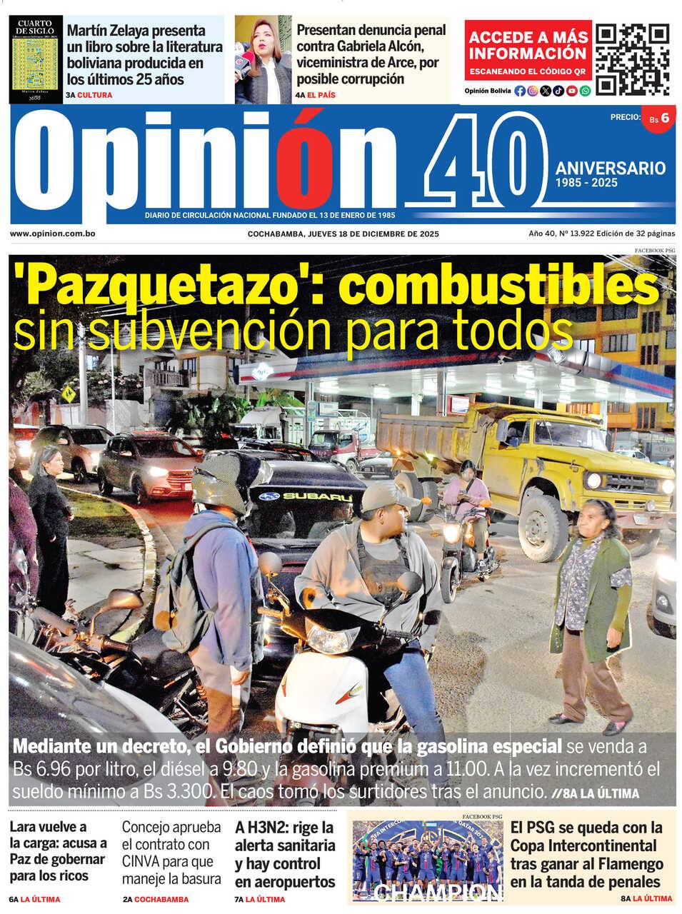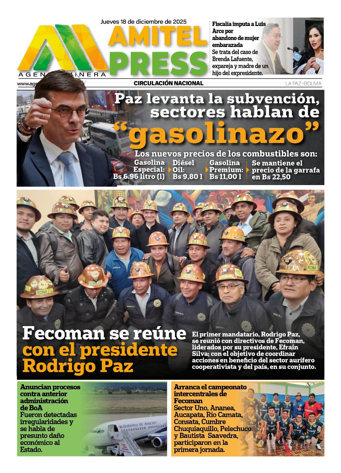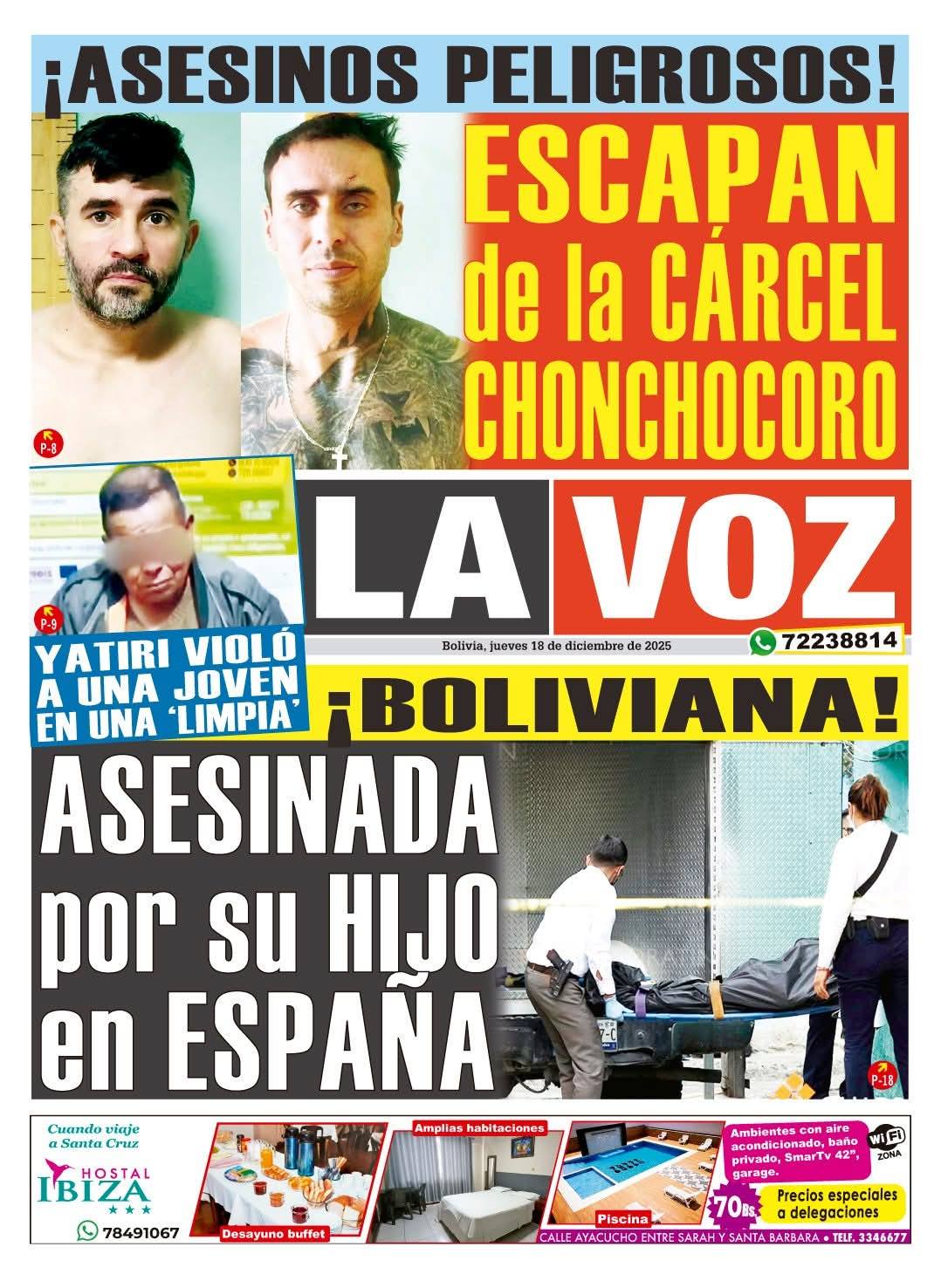 Portadas de los periódicos de Bolivia del jueves 18 de diciembre del 2025