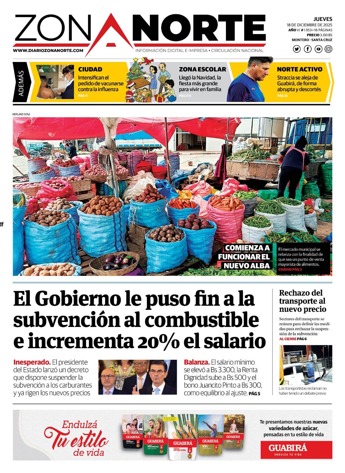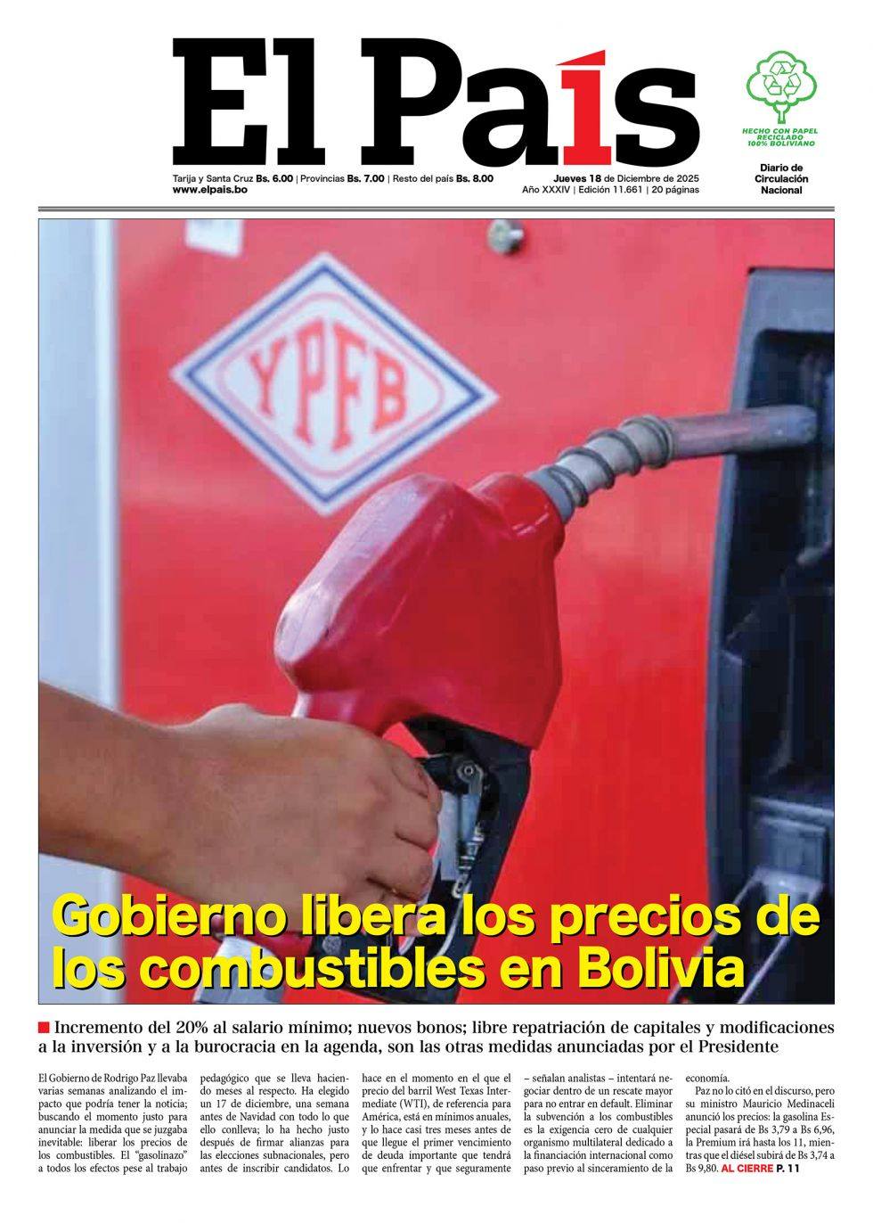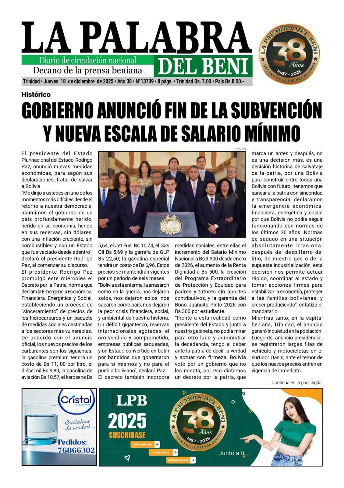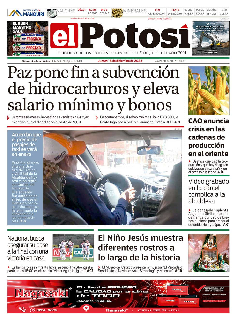 Portadas de los periódicos de Bolivia del jueves 18 de diciembre del 2025