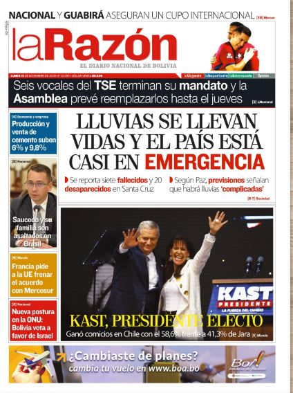 Fuente: El Deber, El Día, Zona Norte, La Palabra, La Razón, Ahora El Pueblo, La Estrella del Oriente, El Mundo, Los Tiempos, Correo del Sur, El País, El Periódico, El Diario, Opinión.