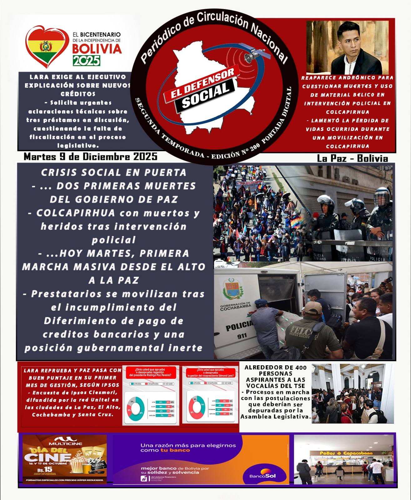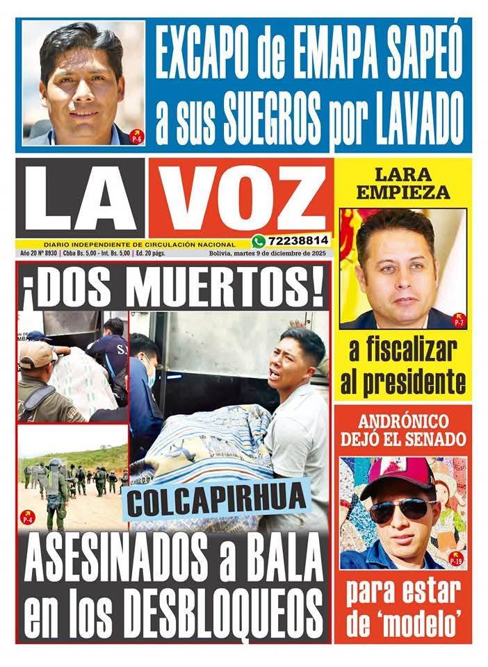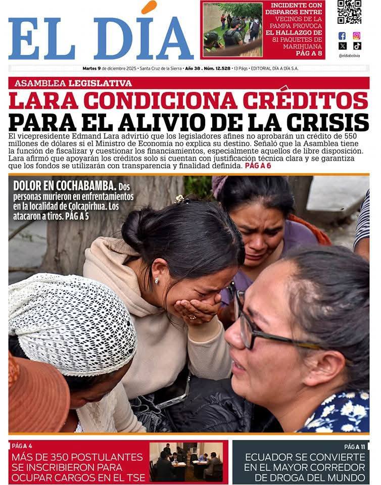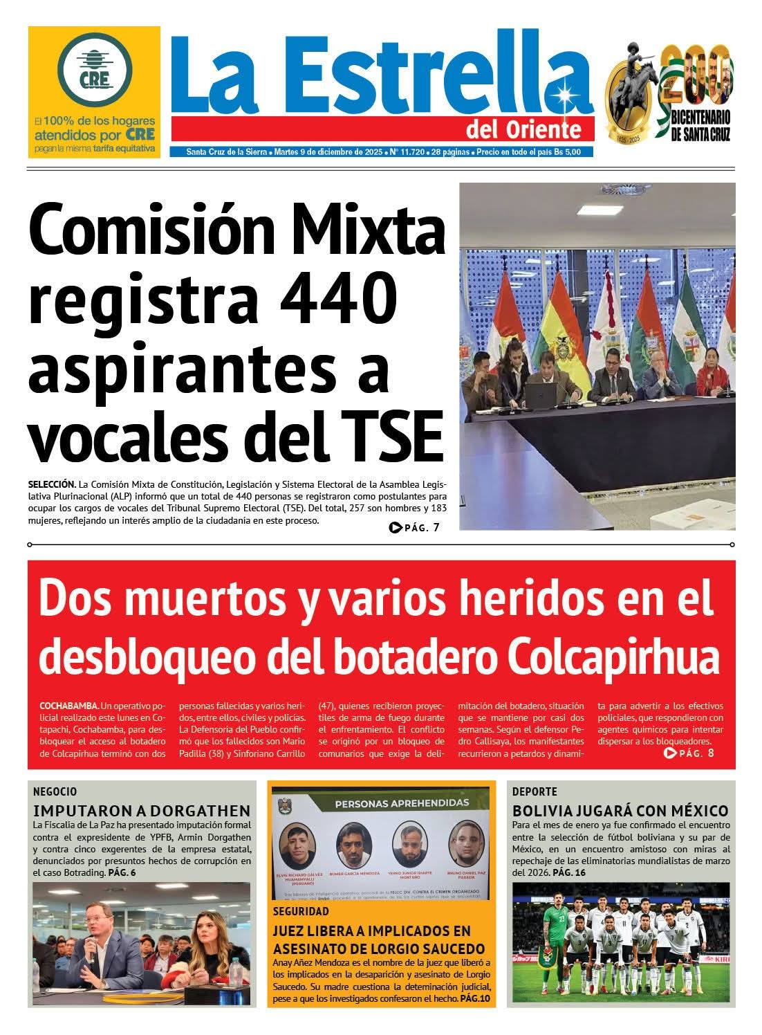 Fuente: El Deber, El Día, Zona Norte, La Palabra, La Razón, La Prensa, La Estrella del Oriente, El Mundo, Los Tiempos, La Voz, Contraparte, Andaluz, Correo del Sur, El País, El Periódico, El Diario, Amitel Pres, Opinión, Caja Negra, Novavox.