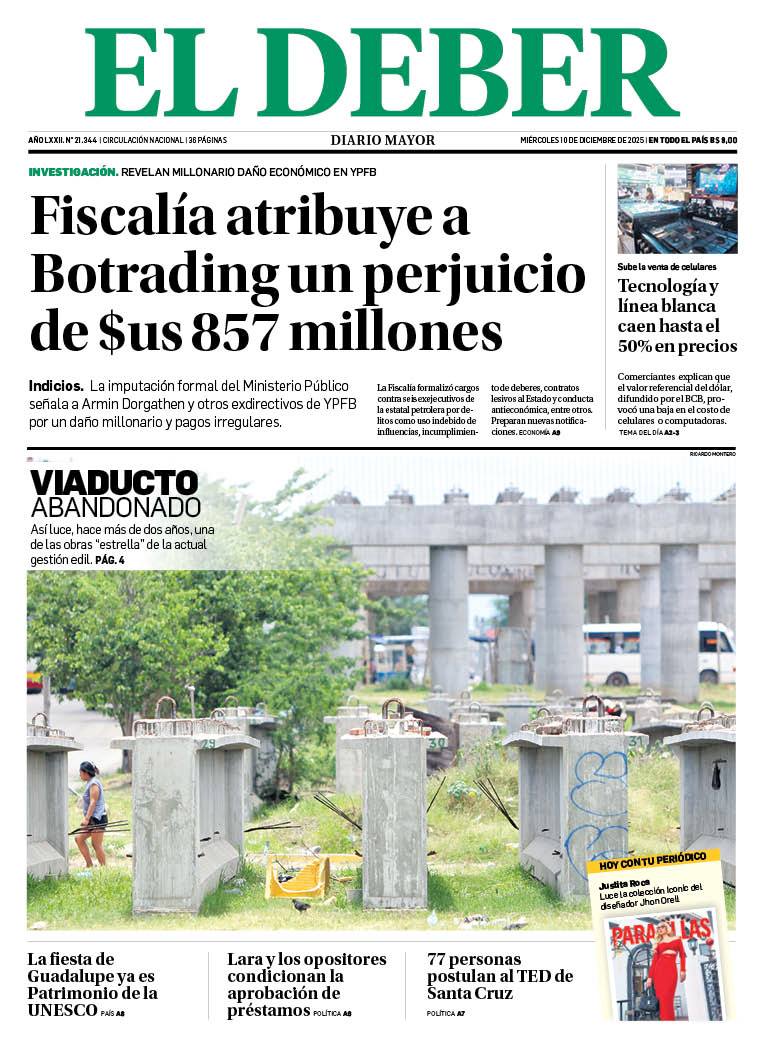 Portadas de los periódicos de Bolivia del miércoles 10 de diciembre del 2025