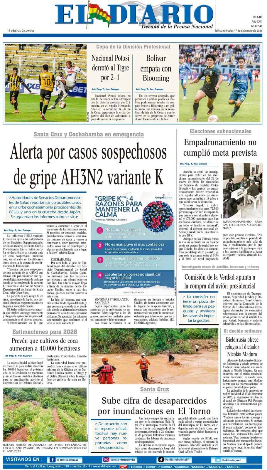 Portadas de los periódicos de Bolivia del miércoles 17 de diciembre del 2025