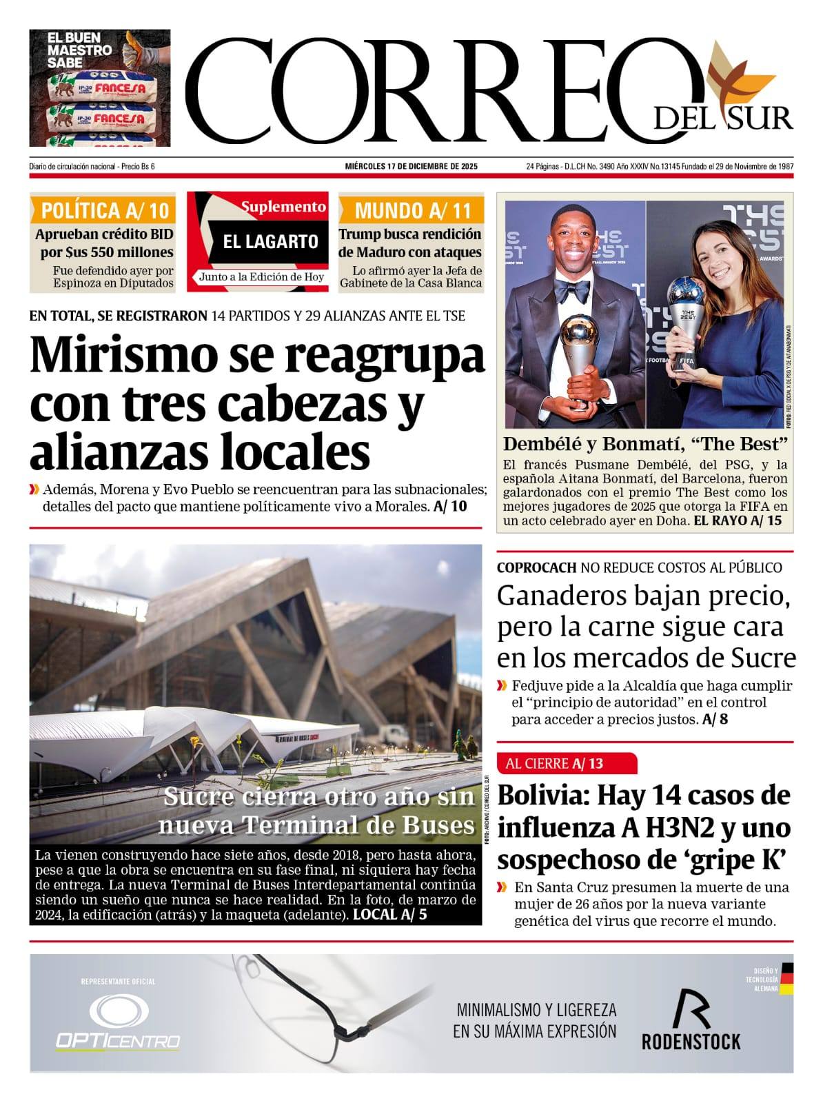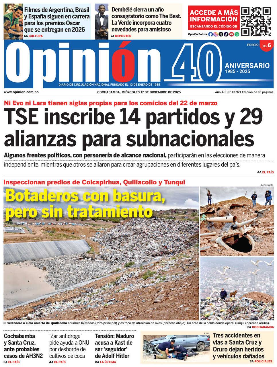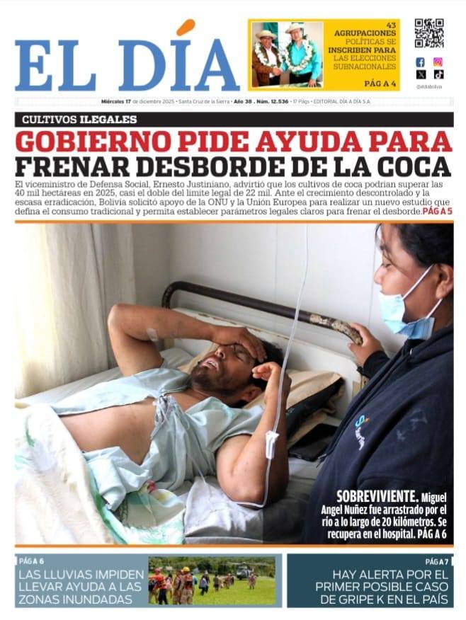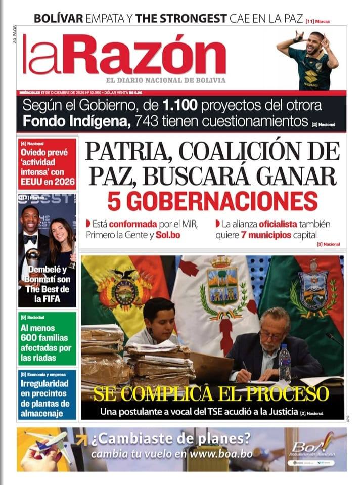 Portadas de los periódicos de Bolivia del miércoles 17 de diciembre del 2025